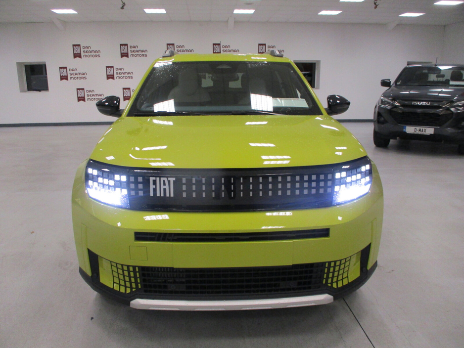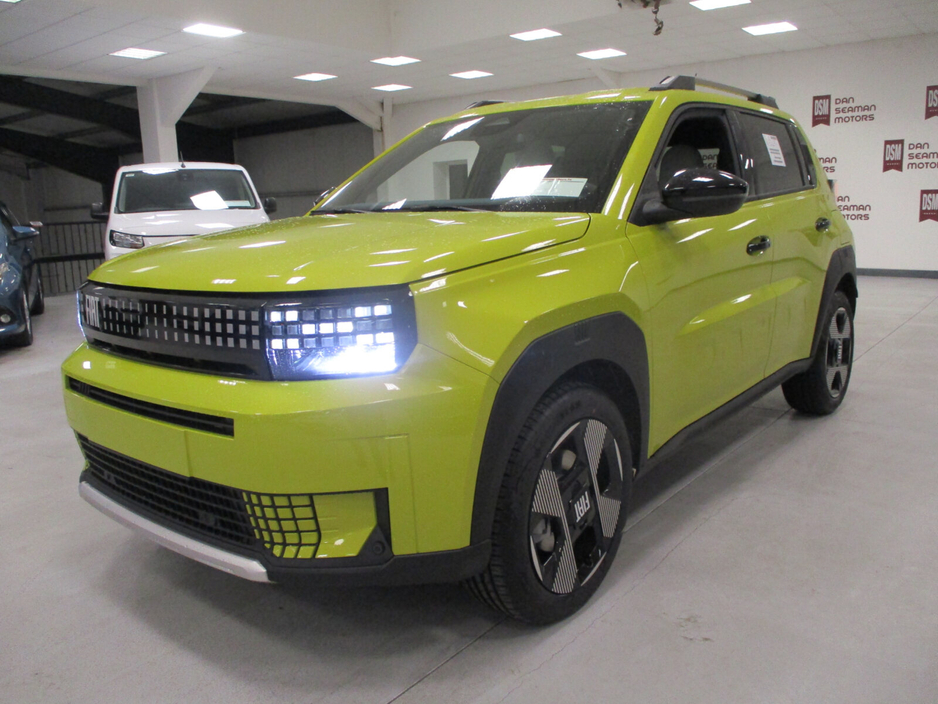 THE ALL NEW FIAT GRANDE PANDA HAS ARRIVED AT DAN SEAMAN MOTORS. 5 YEAR WARRANTY 3 YEAR SERVICE PLAN PRICES STARTING FROM: €24195 POP EDITION €25195 ICON EDITION €28195 LA PRIMA EDITION EXTERIOR • 17’’ alloy wheels with hub cover • Front and rear bumpers Style (with skid plates) • Roof rails • Privacy glasses • External mirrors electric folding INTERIORS & CONVENIENCE • La Prima fabric seat upholstery • Steering wheel wrapped "soft-touch" • Dashboard Signature (with bamboo scraps) • Central armrest • Front door panels with fabric insert • Interior lamp LED with map reading lights • Glossy black B and C pillar TECHNOLOGY • Front Parking Sensors • Rear-view camera • Automatic air conditioning • Wireless charger • Electrochromic rearview mirror • Rain sensor • Embedded navigation CHARGING SOLUTIONS (BEV only) • 7kW on board charger (Front Spiral Cable) • 100kW DC (on side of vehicle) Air conditioning, Climate control, Armrest, Electric side mirrors, Electric windows, Electric handbrake, Multi-function steering wheel, Rain sensor, Split rear seats, Android Auto, Apple CarPlay, Bluetooth, 12v power outlet, Radio, Touch screen display, USB connection (front), Cruise control, Navigation system, Parking camera, Rear parking sensors, Roof rails, Speed limiter, Traffic sign recognition, Voice control, Parking assistance, Digital instrument panel, Alloy wheels, Spoiler, Sports seats, Tinted windows, Auto lights (dusk sensor), Fog lights, LED headlights, ABS, Anti collision system, Alarm system, Emergency brake assist, Central locking, Remote central locking, Driver-side airbag, Immobilizer, Isofix, Lane departure warning, Tyre pressure monitor, Passenger-side airbag, Seat belt warning, Side airbag, Stability control, Traction control