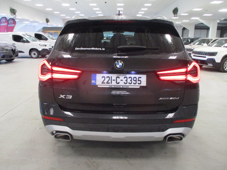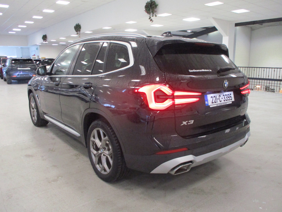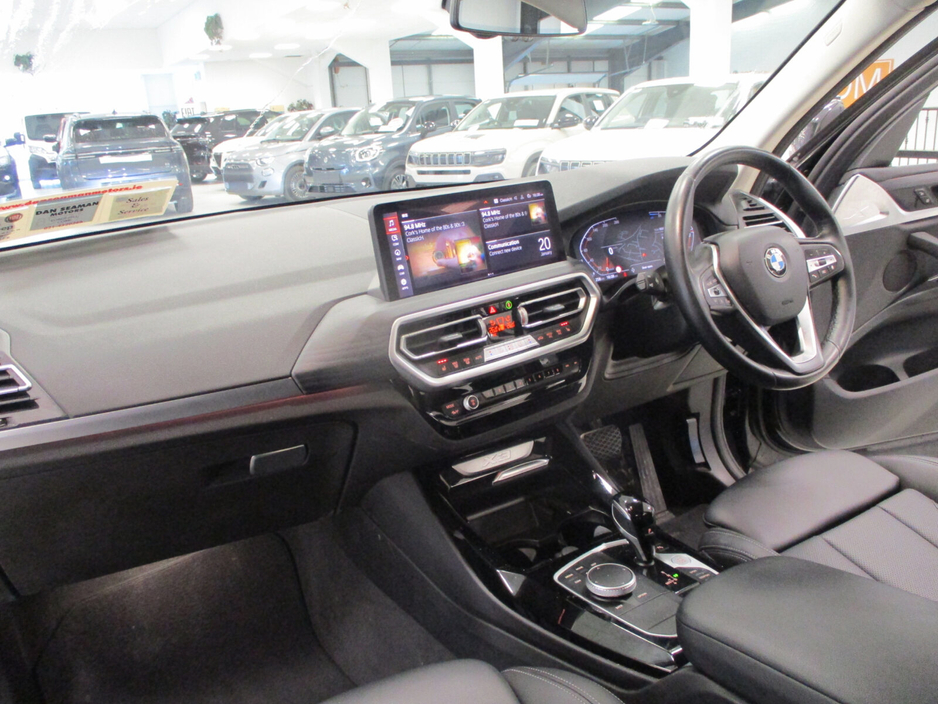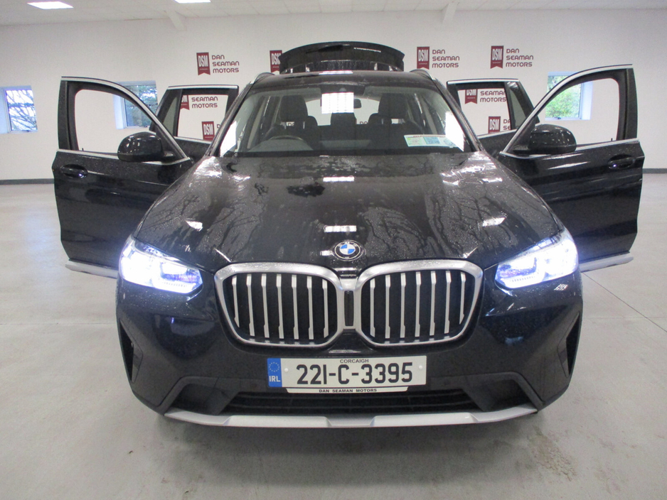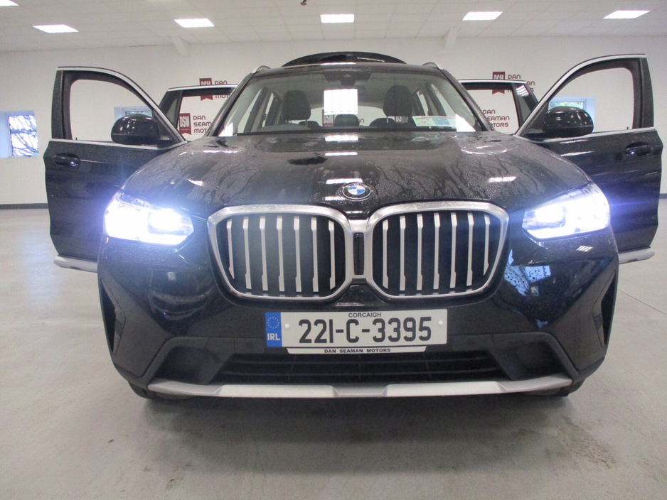 THIS STUNNING BMW X3 X-DRIVE(AWD) T/DSL AUTOMATIC IS NOW AVAILABLE FROM OUR STOCK-FINANCE ARRANGED AT UNBEATABLE RATES ASK FOR FULL DETAILS-TRADE IN'S WELCOME WITH TOP PRICES PAID-NATIONWIDE DELIVERY-CALL THE NAME IN MOTORING YOU CAN TRUST SERVING THE CORK MOTORING PUBLIC FOR OVER 50 YEARS- DAN SEAMAN MOTORS FORGEHILL CORK 021-4320266 Air conditioning, Climate control, Dual zone climate control, Multi zone climate control, Armrest, Keyless entry, Electrically adjustable seats, Electric boot, Electric side mirrors, Electric windows, Electric handbrake, Heated seats, Multi-function steering wheel, Rain sensor, Split rear seats, Gear shift paddles, Android Auto, Apple CarPlay, Bluetooth, MP3 compatible, 12v power outlet, Radio, Touch screen display, USB connection (front), Cruise control, Hill hold assist, Navigation system, Self-steering parking, Parking camera, Front parking sensors, Rear parking sensors, Remote boot release, Roof rails, Speed limiter, Start-stop system, Traffic sign recognition, Voice control, Parking assistance, Alloy wheels, Leather interior, Leather steering wheel, Spoiler, Sports seats, Tinted windows, Adaptive headlights, Ambient lighting, Auto lights (dusk sensor), Daytime running lights, Fog lights, LED headlights, ABS, Lane change assist, Anti collision system, Alarm system, Emergency brake assist, Central locking, Remote central locking, Driver-side airbag, Immobilizer, Isofix, Lane departure warning, Tyre pressure monitor, Passenger-side airbag, Seat belt warning, Side airbag, Stability control, Traction control, Emergency tyre repair kit, 4WD