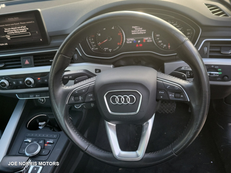 1. Premium Comfort & Technology Equipped with Audis SE trim, you get a high-quality interior, advanced infotainment system, and excellent build quality. Smooth automatic S-Tronic gearbox enhances driving comfort. 2. Efficient & Reliable 2.0 TDI Engine The 122hp diesel engine delivers impressive fuel economy while still offering refined, responsive performanceideal for both motorway cruising and city driving. 3. Elegant Design & Strong Safety Ratings Classic Audi styling with a modern, executive look. The A4 also comes with top-tier safety features, making it a stylish and secure choice for families and professionals. ------- Why Buy from Joe Norris Motors HPI Clear All vehicles receive a theft and write off check to keep your mind at ease ensuring you have complete confidence in your new vehicle. Competitive finance packages We work with leading finance providers to offer competitive finance options tailored to your needs. Part exchanges welcome We welcome all part exchanges. Simply contact us to arrange a suitable time for a vehicle appraisal. Daily price checks Value for money is important which is why we price check our cars daily to ensure they are competitive in the market. Test Drive We recommend all customers take a test drive in the chosen vehicle to ensure they are comfortable and satisfied. Fully valeted Our team of experienced valeters ensure your new car is clean and ready for collection. Experienced sales team Our team of sales specialist are happy to help with any enquiries. You won't find any pushy sales staff at Joe Norris Motors. We are only helping you to make an informed decision. Multipoint inspection Each vehicle receives a comprehensive safety and security inspection, a service and NCT. Thorough internal and external health check. Warranty All vehicles are provided with a minimum 12 month/15000 km warranty. Central Locking, Electric Windows, Airbag, Centre Armrest, Multi-function steering wheel, Satellite Navigation, Traction Control, Metallic Paint, Parking Sensors, 12 Month Warranty, Bluetooth, EBD, Isofix, History Checked, Active Safety Braking / City Brake / Collision Alert, Stop/Start Button, 2 Keys, External Devices Connectivity, Cup holders, Remote boot/hatch/rear door release, Stability control