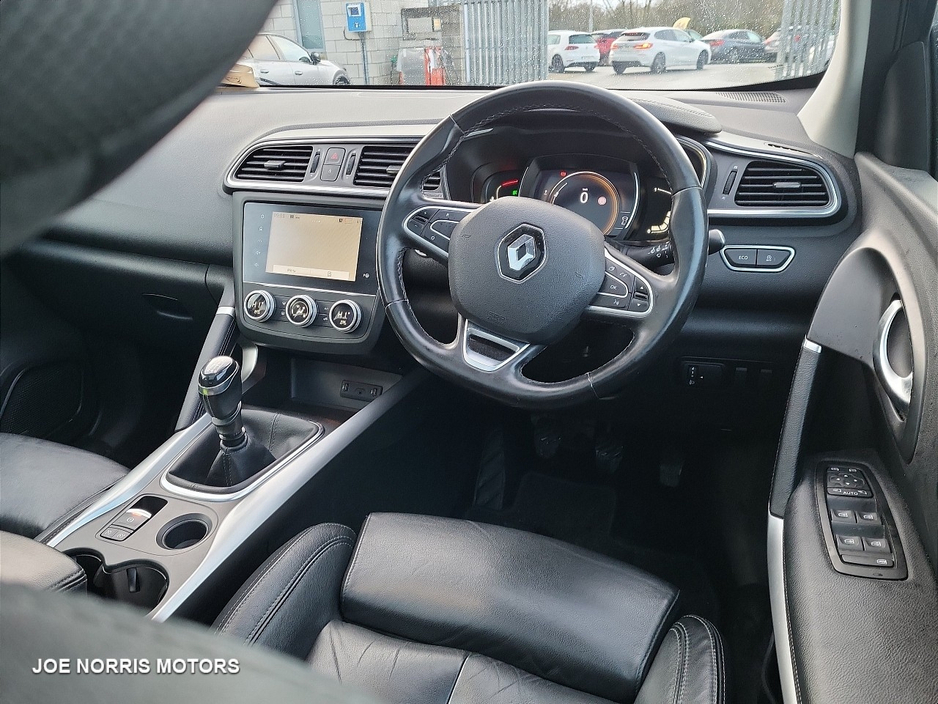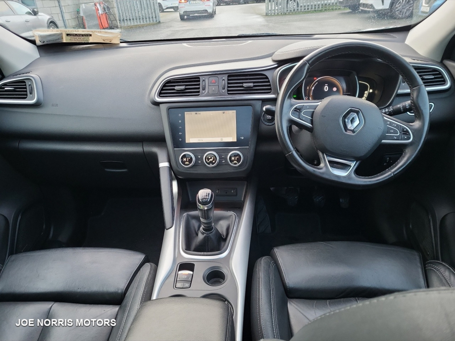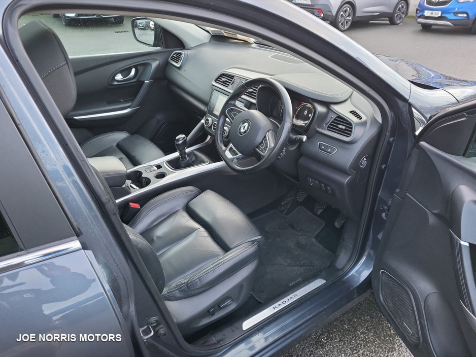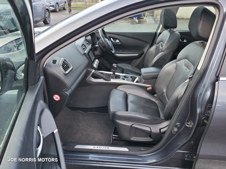 Renault Kadjar GT Line, combining sporty design with everyday practicality and comfort. Key Features GT Line exterior & interior styling Sporty alloy wheels Full Leather Interior Digital cockpit & touchscreen infotainment system Satellite navigation Bluetooth, USB & smartphone connectivity Dual-zone climate control Cruise control & speed limiter Rear parking sensors / reversing camera LED daytime running lights Keyless entry & start Drives perfectly smooth, economical, and comfortable both in town and on long journeys. Well maintained, clean interior, and excellent condition throughout. A great-looking SUV with a sporty edge, perfect for families or anyone wanting comfort with style. Why Buy from Joe Norris Motors HPI Clear All vehicles receive a theft and write off check to keep your mind at ease ensuring you have complete confidence in your new vehicle. Competitive finance packages We work with leading finance providers to offer competitive finance options tailored to your needs. Part exchanges welcome We welcome all part exchanges. Simply contact us to arrange a suitable time for a vehicle appraisal. Daily price checks Value for money is important which is why we price check our cars daily to ensure they are competitive in the market. Test Drive We recommend all customers take a test drive in the chosen vehicle to ensure they are comfortable and satisfied. Fully valeted Our team of experienced valeters ensure your new car is clean and ready for collection. Experienced sales team Our team of sales specialist are happy to help with any enquiries. You won't find any pushy sales staff at Joe Norris Motors. We are only helping you to make an informed decision. Multipoint inspection Each vehicle receives a comprehensive safety and security inspection, a service and NCT. Thorough internal and external health check. Warranty All vehicles are provided with a minimum 12 month/15000 km warranty. Central Locking, Electric Windows, Airbag, Cruise Control, Fog Lamps, Immobiliser, Rear Spoiler, Privacy Glass, Centre Armrest, Multi-function steering wheel, Roof Rails, Satellite Navigation, Traction Control, Metallic Paint, Anti-Theft System, Parking Sensors, 12 Month Warranty, Bluetooth, EBD, Isofix, History Checked, Apple Car Play, Android Auto, Panoramic Sunroof, Active Safety Braking / City Brake / Collision Alert, Stop/Start Button, Touch Screen Media Control, External Devices Connectivity, Cup holders, Remote boot/hatch/rear door release, Stability control