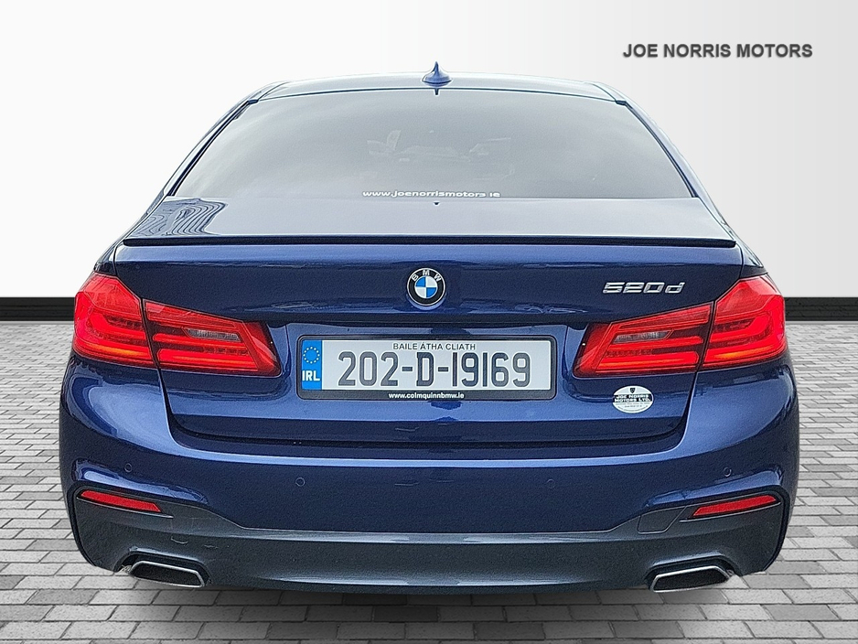 FOR SALE 2020 BMW 520d M Sport Auto. Sleek, Powerful, and Packed with Luxury! Top Features BMW iDrive Touchscreen Infotainment System Satellite Navigation Premium Sound System Reversing Camera Front & Rear Parking Sensors Dual-Zone Climate Control Cruise Control with Brake Function Heated Leather Sports Seats Ambient Lighting Keyless Start Auto Start/Stop Drive Mode Select (Eco, Comfort, Sport) Why Buy This Car? This 2020 BMW 520d M Sport offers a perfect balance of executive luxury, fuel efficiency, and dynamic performance. Whether you're cruising on the motorway or navigating the city, it delivers a smooth, refined drive with a sporty edge. Ideal for both business and leisure. Why Buy from Joe Norris Motors HPI Clear Every vehicle we offer undergoes a thorough theft and write-off check, giving you peace of mind and full confidence in your purchase. Competitive Finance Options We partner with top finance providers to bring you tailored finance solutions that fit your budget and needs. Part Exchange Welcome We gladly accept part exchanges. Contact us to schedule an appraisal at your convenience. Daily Price Checks To offer you the best value, we monitor and adjust our prices daily, ensuring our vehicles remain highly competitive in the market. Test Drive We encourage all customers to take a test drive, so you can be sure your chosen vehicle is the perfect fit. Fully Valeted Our expert valeting team prepares every car to a high standard, so it is spotless and ready for you to drive away. Experienced Sales Team Our knowledgeable, friendly sales specialists are here to answer your questions without pressure, helping you make an informed choice. Multipoint Inspection Every car undergoes a thorough safety and security inspection, a full service, and an NCT, including an in-depth internal and external health check. Warranty Each vehicle comes with a minimum 12-month or 15,000 km warranty for added reassurance. Central Locking, Electric Windows, Airbag, Fog Lamps, Centre Armrest, Multi-function steering wheel, Satellite Navigation, Traction Control, Anti-Theft System, Parking Sensors, 12 Month Warranty, Bluetooth, EBD, Isofix, History Checked, Active Safety Braking / City Brake / Collision Alert, Stop/Start Button, Touch Screen Media Control, External Devices Connectivity, Cup holders, Remote boot/hatch/rear door release, Stability control