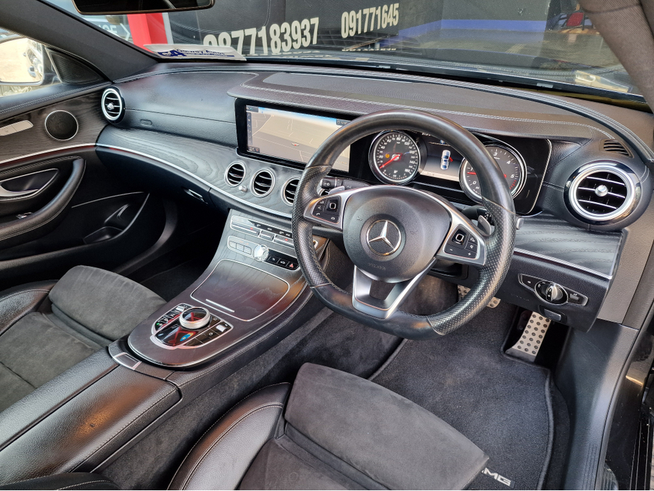 **181 MERCEDES E CLASS AMG AUTOMATIC-TOP SPEC. MODEL LOADED WITH EXTRAS,-PARKING SENSORS WITH CAMERA,SAT NAV, HEATED ALCANTARA/LEATHER SEATS,LED, HEADLAMPS*** *** CAR IN PERFECT CONDITION, LOOKS AND DRIVES GREAT.*** --- WARRANTED MILEAGE,AND FULL SERVICE HISTORY-CARTEL.IE HISTORY REPORT VERIFIED.--- ////TRADE-INS WELCOME //CASH SALE PRICE 22.950. //TRADE IN PRICE 23.950. ---COMES WITH FULL NCT AND DEALER WARRANTY.--- ****FINANCE ARRANGED AT COMPETITIVE RATES.*** ***ALL CARS SUPPLIED WITH FULL HISTORY CHECKS AND VERIFIED MILEAGE REPORTS.*** **VEHICLES SERVICED ON-SITE,AND SUPPLIED WITH OUR OWN IN HOUSE WARRANTY.**** ////PLEASE CALL SALES TEAM ON 091 771 645 ,OR VICTOR 087 718 3937,DAMIAN 0871712185 ///VIEW ALL OUR CARS AT WWW.GALWAYAUTOS.IE //// .. Air Conditioning, Central Locking, Full Service History, Immaculate condition, Electric Windows, Airbag, Alarm, Alloy Wheels, Cruise Control, Electric Mirrors, Electric Seats, Fog Lamps, Immobiliser, Leather Upholstery, Full Leather, Privacy Glass, Sports Seats, Automatic Wipers, Automatic Lights, Centre Armrest, Multi-function steering wheel, Climate Control, Satellite Navigation, Traction Control, Metallic Paint, Multiple Air Bags, Xenon Lights, Sports Suspension, Anti-Theft System, Parking Sensors, Trade in accepted, Bluetooth, Remote Central Locking, EBD, Electronic handbrake, Sun blinds, Isofix, Hill holder, History Checked, Finance Checked, Reversing Camera, Front Parking Sensors, Lane Departure Warning, Wireless Smartphone Control, Electro Chrome Rear View Mirror, Speed Sign Recognition & Recommendation, Active Safety Braking / City Brake / Collision Alert, Stop/Start Button, Touch Screen Media Control, Driver Fatigue Warning, Drive Mode Selector, Dual Zone Climate Control, Daytime Running Lights, Main Dealer Service History, External Devices Connectivity, Cup holders, Remote boot/hatch/rear door release, Stability control