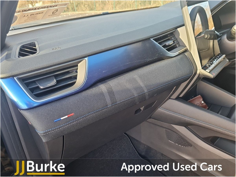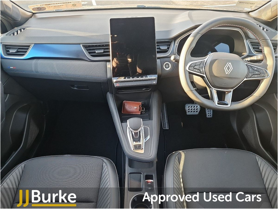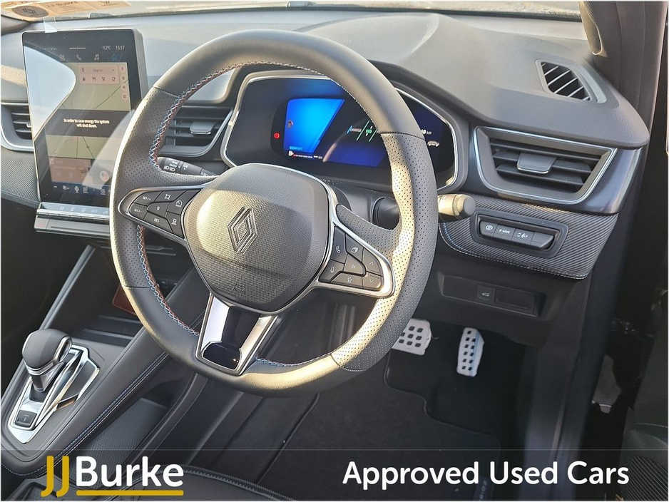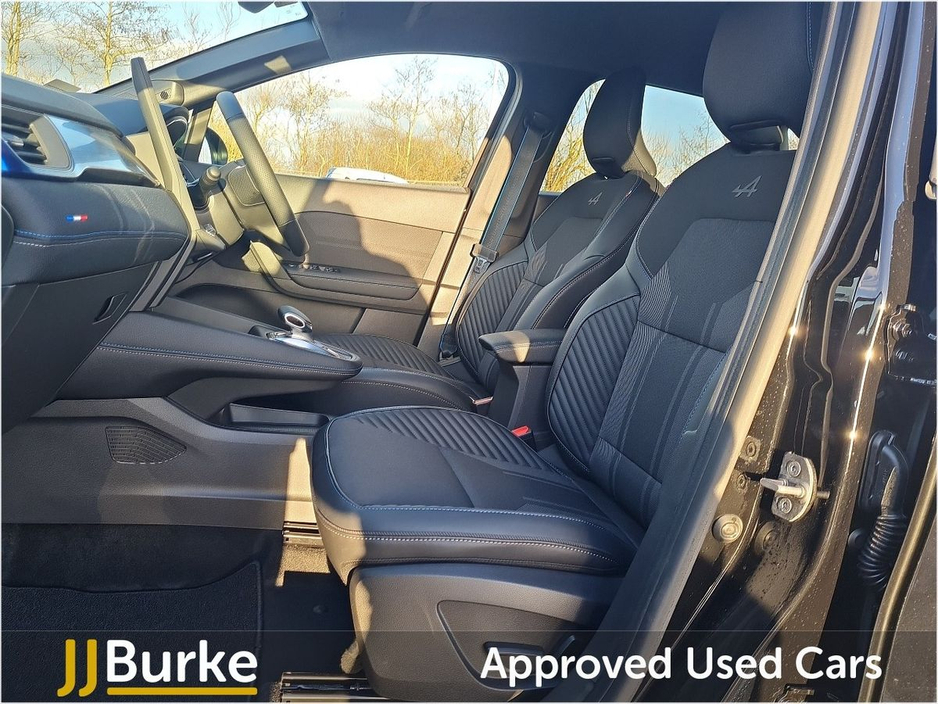 This Courtesy Renault Symbioz Techno Esprit Alpine is currently at JJ Burke Carsales, Ballinrobe, Co. Mayo and available from May 2025. A deposit will secure ownership. Features of this Renault Symbioz: • 19” esprit Alpine ‘elixir’ alloy wheels • Matte grey front and rear skid plates • Electrically adjustable front seats • Heated front seats • Heated synthetic leather steering wheel • Electric power hands-free tailgate opening • Brushed blue decorative upper strip • Lower textile strip on dashboard with red, white and blue flag • 26% recycled fabric/titanium black grained coated fabric with blue top-stitching • Front, rear & side parking sensors • Rear cross traffic/pedestrian alert – with rear braking assistance • Active driver assist: adaptive cruise control with lane centering assist • Blind spot warning and rear detection with emergency lane keep assist • Occupant safe exit alert Plus much more. Price displayed includes minimum scrappage allowance of €1,000 – retail price €36,950 Excellent Finance Packages available. Talk to our sales team on 094 954 1359 or on mobile: Yordan 087 444 0909, Carlos 087 434 8970, William 087 346 1280, and Alan 086 410 7147. CAR IS IN DAILY USE AND KM MAY VARY, PLEASE CONTACT US FOR EXACT KM