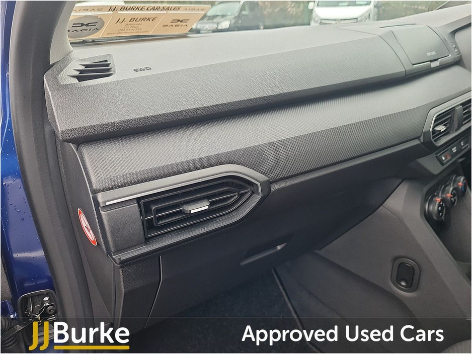 Features include: • 15” Steel wheels • New brand identity • Black door handles and mirrors • Body-coloured front and rear bumpers • New grille with white trim • Y-shaped LED lighting signature • LED automatic daytime running lights • Essential upholstery • Fog Grey air vent surrounds with white sliders • Black interior door handles • Titanium black door panels • Door mirrors with interior manual adjustment • Auto lighting system • Electrical power-assisted steering • Stop & Start • On-board computer: distance travelled, average speed, range, average consumption. • Cruise control / speed limiter with audible warning • ABS (Anti-lock Braking System) and EBA (Emergency Brake Assist) • Intercity Automatic Emergency Braking (AEBS) • ESP (Electronic Stability Program) + HSA (Hill Start Assist) • Emergency Call (E-call) • 6 Airbags (front and side Driver & passengers including curtain airbags) • Front and rear seat belts with pretensioner and force limiter • Tyre pressure Monitor • Tyre inflation kit • ISOFIX fix points for child seats • Remote central locking system • Electric front windows • Height & depth adjustable steering wheel • Automatic locking of doors when in motion • Front ceiling light • 12V front socket • Manual rear windows • Front USB socket • Manual heating and air conditioning system • 60/40 Split Folding rear seats • Media Control: DAB Radio with display on instrument panel + Steering wheel controls + Bluetooth + 2 Speakers Plus much more Excellent Finance Packages available. Talk to our sales team on 094 954 1359 or on mobile: Yordan 087 444 0909, Carlos 087 434 8970, William 087 346 1280, and Alan 086 410 7147.