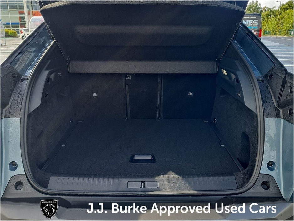 This Demo Peugeot e3008 eAllure is currently at JJ Burke Carsales, Ballinrobe, Co. Mayo. A deposit will secure ownership. Features of this Peugeot e3008: • Peugeot Panoramic i-Cockpit® with 21’’ HD curved and floating screen • Customisable Virtual ‘i-Toggle’ display • PEUGEOT Open & Go (Proximity Keyless Entry with Push Button Start) Wireless MirrorScreen (Apple Car Play & Android Auto) • Ambient lighting linked to Drive Mode • ECO LED Headlights and front and rear signature daytime running lights • Dark tinted privacy glass for rear doors, tailgate and quarter windows • Dual Zone Climate Control with rear air vents • Adaptive Cruise Control with ‘Stop & Go’ with lane keeping assistance • Smartphone Wireless Charger (15 Watts) with status light and ambient lighting • 360° Vision & Drive assist pack • Mode 3 type 2 cable for wall box charging • 3-phase 11kW on board charger • Heat pump • Remote charge management via My PEUGEOT App Plus much more. Price displayed includes minimum scrappage allowance of €1000 – retail price €40,950 Excellent Finance Packages available. Talk to our sales team on 094 954 1359 or on mobile: Yordan 087 444 0909, Carlos 087 434 8970, William 087 346 1280, and Alan 086 410 7147. CAR IS IN DAILY USE AND KM MAY VARY, PLEASE CONTACT US FOR EXACT KM
