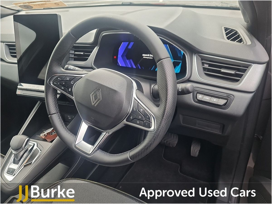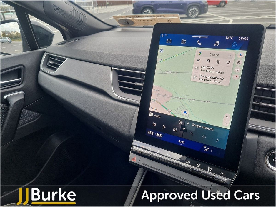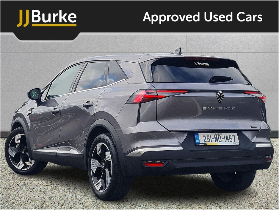 This Ex-Courtesy Renault Symbioz Techno is currently at JJ Burke Carsales, Ballinrobe, Co. Mayo. A deposit will secure ownership. Features include: • 18” ‘gravity’ alloy wheels • Shark fin antenna • Dark tinted rear windows and tailgate • Full LED front & rear lights • Daytime running lights • Radiator grille with 3D graphics: black upper part with grey graphics and body-tone lower part • Satin chrome lower door protection • Wireless phone charger • Wifi smartphone integration with Apple CarPlay™ & Android Auto™ • 10.4” OpenR link touchscreen with built in Google Automotive Services (incl. Navigation), DAB & Bluetooth • 10.25” digital driver display • MULTI-SENSE: 3 driving modes and up to 48 ambient lighting colours • Hands-free keycard – keyless access & start • 2 front & 2 rear USB-C ports • Granite grey decorative upper strip • Automatic air conditioning with one touch quick demist function and air quality regulator • Embossed marled black fabric/titanium black biosourced grained coated fabric with yellow top-stitching • Driver and front passenger height adjustable seat • Height and depth – adjustable steering wheel • Modular boot floor • Synthetic leather steering wheel • Rear seats -1/3:2/3 foldable with sliding bench • ISOFIX child seat fixing points on rear outermost seats • Renault automatic emergency assist (E-Call) • Full LED front & rear lights • Automatic headlights & windscreen wipers with rain sensors • Automatic high/low beam • Rear fog light • Active emergency braking system – urban and pedestrian/cyclist • Driver attention alert • Front & rear detection with emergency lane keep assist (including solid line, oncoming traffic & road edge detection) • Distance warning alert • Adaptive cruise control with speed limiter • Rear view camera • Front, rear & side parking sensors • Heated electric folding wing mirrors • Auto-dimming rear view mirror with light and rain sensor – frameless • Vehicle sound for pedestrians Plus much more. Price displayed includes minimum scrappage allowance of €1,000 – retail price €35,500. Excellent Finance Packages available. Talk to our sales team on 094 954 1359 or on mobile: Yordan 087 444 0909, Carlos 087 434 8970, William 087 346 1280, and Alan 086 410 7147.