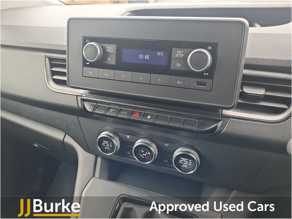 Features include: • DAB radio with Bluetooth connectivity, USB socket and AUX input • 3.5” Monochrome TFT driver information display • Automatic headlights and rain sensitive front wipers • Key - 3 button folding with selective opening • 12v Power Socket (Front) • Driver’s Seat - Height Adjustable • Single Passenger Seat with ISOFIX • Closed Glovebox • Manual Air Conditioning • Electric front windows - driver’s side ‘one touch’ descending • Anchorage Points in Load Area • New Kangoo Fabric Upholstery • Full Halogen Headlights and Daytime Running Lights • 16” Steel Wheel Trims • Door Mirrors - Heated with Electric Adjustment • Nearside and Offside Loading Doors – Unglazed • Rear Doors - Unglazed, 180° • Roof Bar Fixings • Airbag – Driver • Hill Start Assist • E-Call - automated emergency call • Spare Wheel • Cruise Control and Speed Limiter • Deadlocking Plus much more. Price displayed includes minimum scrappage allowance of €450 – retail price €15,950 plus VAT Excellent Finance Packages available. Talk to our sales team on 094 954 1359 or on mobile: Yordan 087 444 0909, Carlos 087 434 8970, William 087 346 1280, and Alan 086 410 7147.
