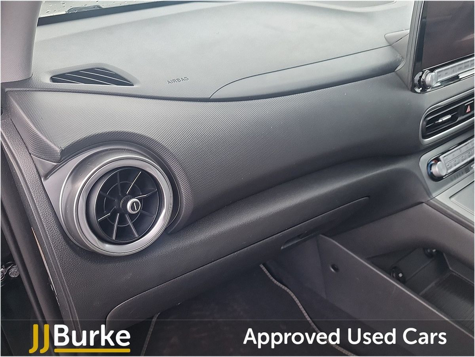 Electric Performance • 64kWh battery delivering strong electric performance with excellent real-world driving range. • Automatic transmission with smooth, instant acceleration and quiet driving experience. • Ideal for city commuting and longer motorway journeys with zero tailpipe emissions. Exterior & Styling • Smart black metallic finish with modern Kona SUV design. • LED headlights & daytime running lights for a sharp, premium look. • Alloy wheels enhance the sporty stance. • Privacy glass adds comfort and style. Interior Comfort & Technology • Premium interior finish with high-quality materials. • Digital driver display with EV driving information and range data. • Touchscreen infotainment system with navigation. • Apple CarPlay & Android Auto for full smartphone connectivity. • Heated front seats and heated steering wheel for extra comfort. • Climate control for year-round cabin comfort. • Keyless entry & start for everyday convenience. Safety & Driver Assistance • Reversing camera & parking sensors for easy manoeuvring. • Lane keep assist & driver attention warning. • Adaptive cruise control for relaxed motorway driving. • Multiple airbags, ABS and stability control for peace of mind. Practicality • Comfortable 5-seat layout with excellent passenger space. • Large boot capacity for an electric SUV of this size. • Split-fold rear seats for extra loading flexibility. Running Benefits • Low running and servicing costs. • Ideal for home charging and public fast-charging networks. • Quiet, smooth and environmentally friendly driving. Price displayed includes minimum scrappage allowance of €1,000 – retail price €20,950 Excellent Finance Packages available. Talk to our sales team on 094 954 1359 or on mobile: Yordan 087 444 0909, Carlos 087 434 8970, William 087 346 1280, and Alan 086 410 7147