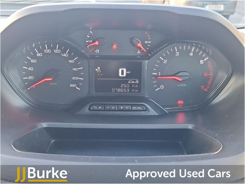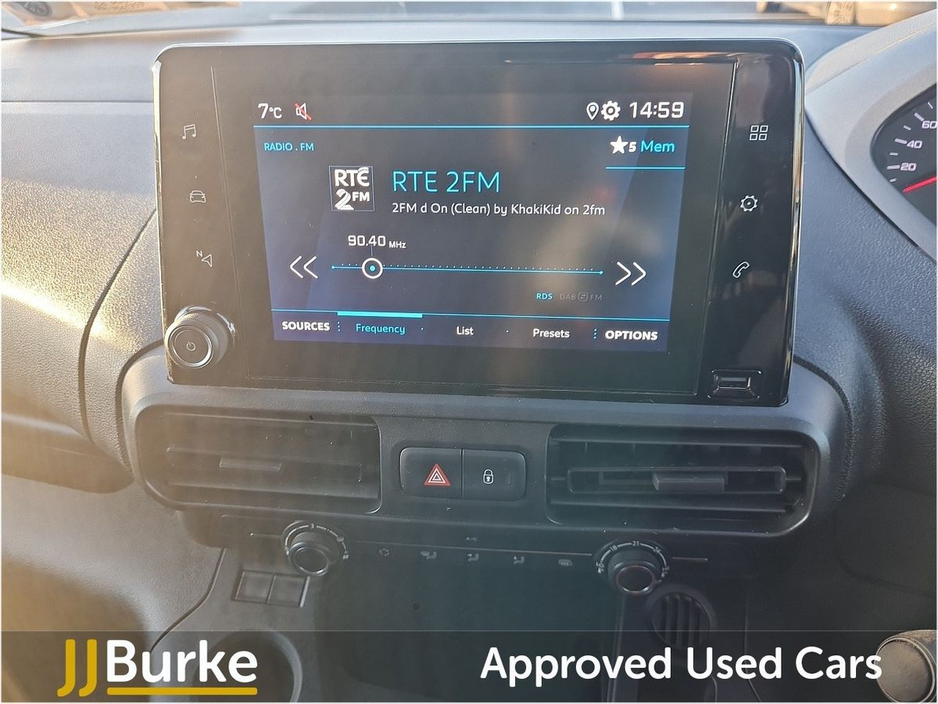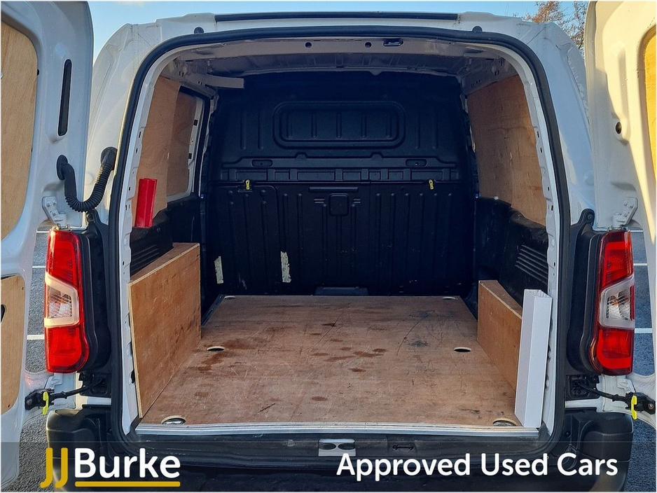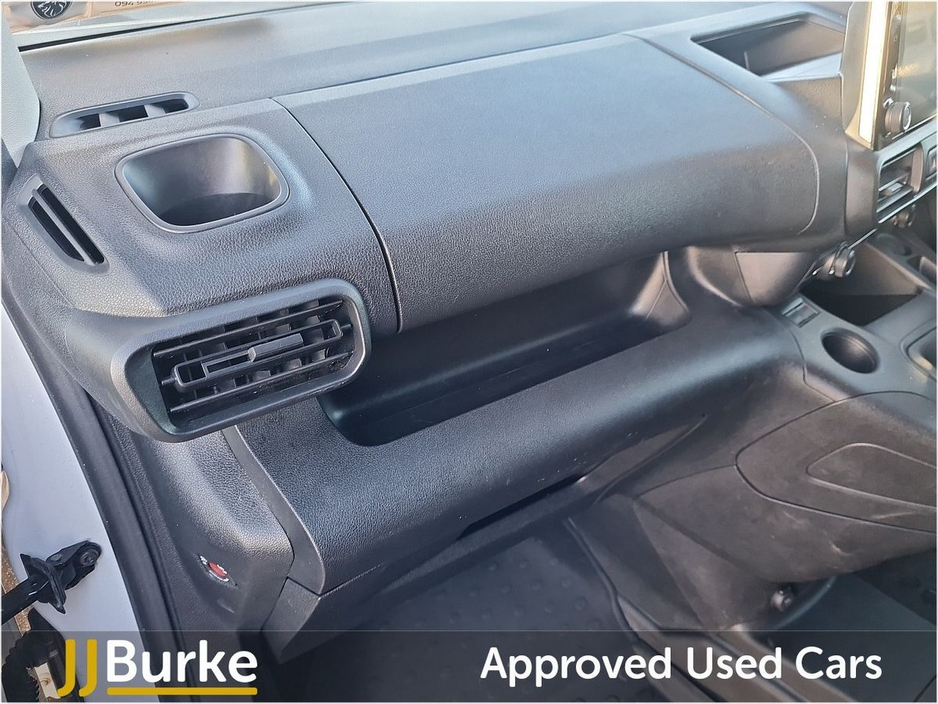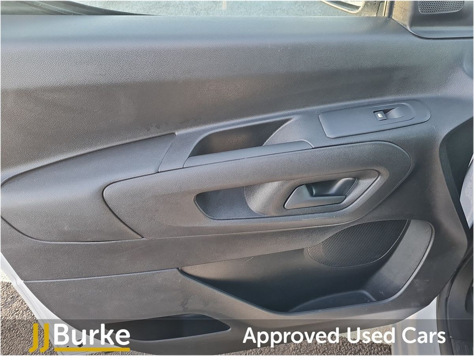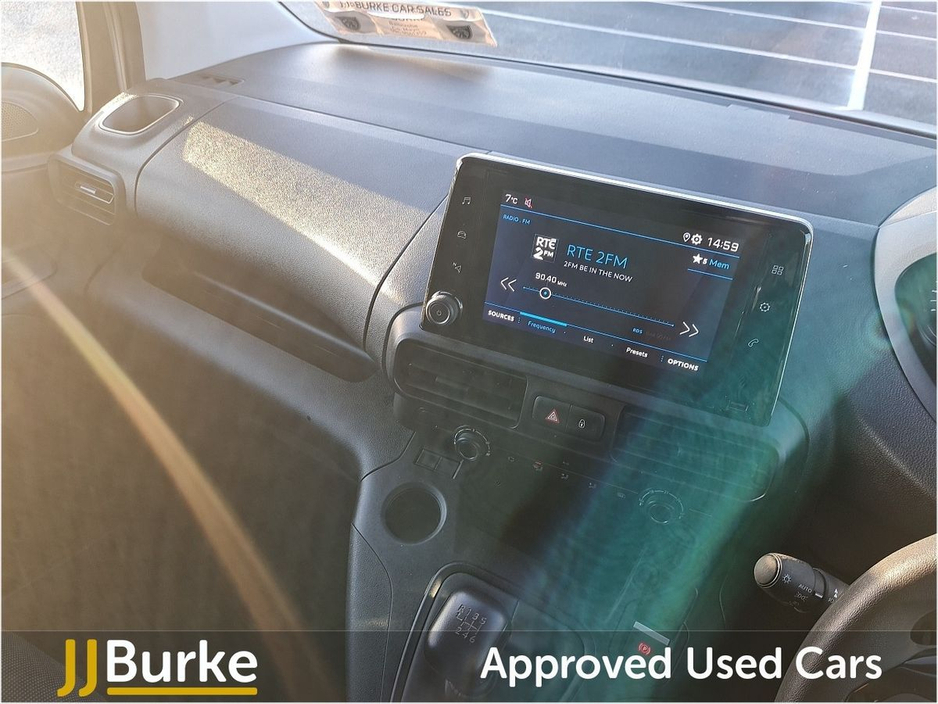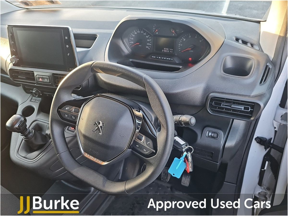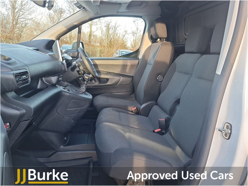 Features include: • 6-way Driver’s Seat (Reach/Rake/Height) & Lumbar • Electric Parking Brake • Manual Aircon w/air recirculation facility • 12-volt socket • Overhead storage shelf • Hard plastic floor protection in cabin • Moduwork – Modular folding Passenger bench seat with centre multipurpose seat (shelf, seat & storage) • Steering column adjustable – reach and rake • Spare wheel (Mounted below floor pan) • 180° Asymmetrical panel rear doors • Sliding door, left side • Six fixed floor-mounted load lashing ties • Electrically adjustable/heated door mirrors • Electrically operated front windows with one-touch facility • Sliding door rail cover – short black trim • Exterior mirror – Black • Halogen Headlamps with integrated DRL • Audio Controls through steering wheel buttons • Smartphone Station with Bluetooth & 2 USB connection, two speakers and voice recognition (through App) • Peugeot Connect RCE (emergency call and assistance + offers of branded services) • Programmable heating & charging via My Peugeot App • Tyre Pressure Monitoring System (Indirect) • Cruise control with speed limiter • High Beam Assist • Rear Parking Sensors • Driver Safety Items with Driver Attention Alert, Intelligent Speed Assistance Speed Limit Info, Lane Keep Assist, Advanced Emergency Braking System, Electronic Stability Control and ABS with Hill Start Assist, EBA and EBFD • Automatic on/off headlight control • Remote control central deadlocking with Immobiliser • Driver & Passengers Airbag • Slide (Thorax) & Curtain Airbags • Acoustic vehicle alerting system (BEV Pedestrian Alert) • Alarm – Perimetric and Volumetric • PEUGEOT I-Connect Infotainment system featuring: 10” Central Screen • Mirror Screen (Android Auto & Apple Carplay) • Steering wheel controls and “OK Peugeot” intelligent voice assistant • Two Speakers and Two Tweeters • 2x USB • 10” Digital Colour Cluster • VisioPark 180° with rear sensors Plus much more Price displayed includes minimum scrappage allowance of €1,000 – retail price €16,950 plus VAT Excellent Finance Packages available. Talk to our Fleet & Commercial Specialist Alan 086 410 7147