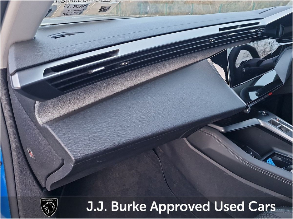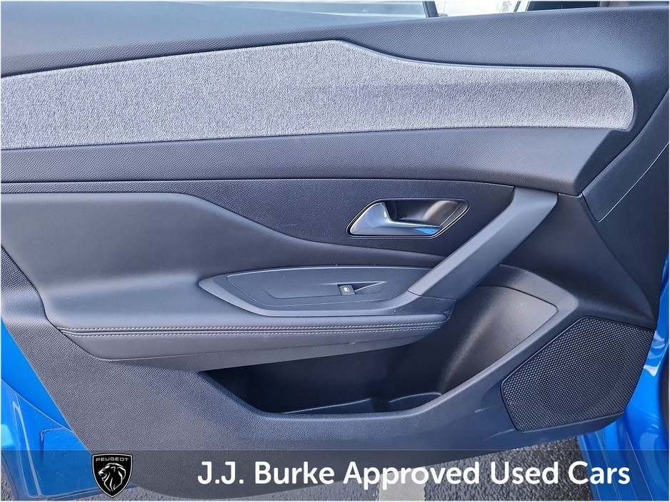 Performance & Driving • Efficient 1.5 BlueHDi diesel engine (130hp) offering smooth, responsive performance. • Automatic transmission for relaxed city and motorway driving. • Front-wheel drive with refined handling and low running costs. Exterior & Style • Elegant blue metallic finish with modern Peugeot styling. • LED daytime running lights and sleek front grille. • Alloy wheels for a premium look. • Compact hatchback design with aerodynamic profile. Interior Comfort & Technology • Comfortable 5-seat cabin with high-quality Allure trim. • Touchscreen infotainment system with navigation. • Apple CarPlay & Android Auto for smartphone integration. • Bluetooth hands-free calling and USB connectivity. • Air conditioning and ergonomic seating for everyday comfort. Safety & Driver Assistance • Rear parking sensors for easier manoeuvring. • Lane keeping assist and driver attention alert. • Cruise control with speed limiter. • Multiple airbags, ABS and electronic stability control. • ISOFIX child seat mounting points. Practicality • Generous boot space with split-fold rear seats. • Compact size makes city parking and manoeuvring easy. • Suitable for families or commuters seeking efficiency and comfort. Running & Ownership • Diesel engine tuned for excellent fuel economy and low emissions. • Smooth, reliable automatic transmission for effortless driving. • Peugeot’s known quality and reliability. Price displayed includes minimum scrappage allowance of €1,000 – retail price €26,950 Excellent Finance Packages available. Talk to our sales team on 094 954 1359 or on mobile: Yordan 087 444 0909, Carlos 087 434 8970, William 087 346 1280, and Alan 086 410 7147.