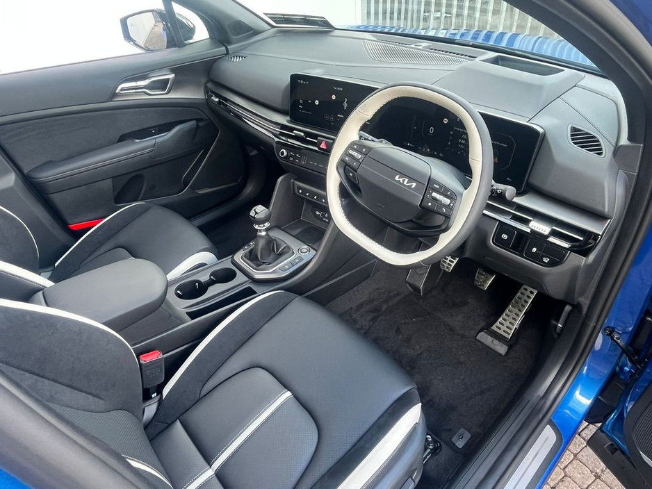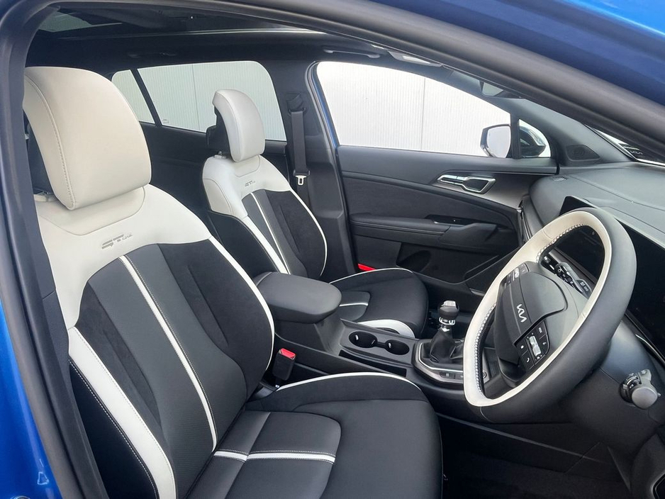 Kia Sportage PE GT Line 1.6 Diesel MHEV The Kia Sportage PE GT Line 1.6 Diesel MHEV is a perfect fusion of modern technology, sporty styling, and eco-conscious driving. As a Mild Hybrid Electric Vehicle (MHEV), it features a 1.6-liter diesel engine combined with an electric motor, enhancing fuel efficiency while reducing emissions without sacrificing performance. The MHEV system provides an electric boost to the engine during acceleration, delivering a smoother, more responsive drive while keeping running costs low and efficiency high. Designed with a sporty edge, the GT Line trim adds a dynamic, high-performance look to the Sportage. Its bold exterior features sleek lines, Kia’s signature tiger-nose grille, aggressive front bumper styling, and striking alloy wheels, giving it a distinct, athletic presence on the road. The sharp, contemporary design is complemented by full LED headlights, creating a refined and modern appearance that stands out wherever you go. Inside, the Sportage PE GT Line offers a premium and tech-forward cabin. The GT Line trim comes equipped with sport-inspired accents, including leather upholstery, a leather-wrapped steering wheel, and a sleek digital cockpit. The infotainment system, featuring a large touchscreen, Apple CarPlay, and Android Auto, keeps you connected and entertained on the go. A spacious interior ensures comfort for both driver and passengers, while ample boot space adds practical flexibility for your everyday needs.