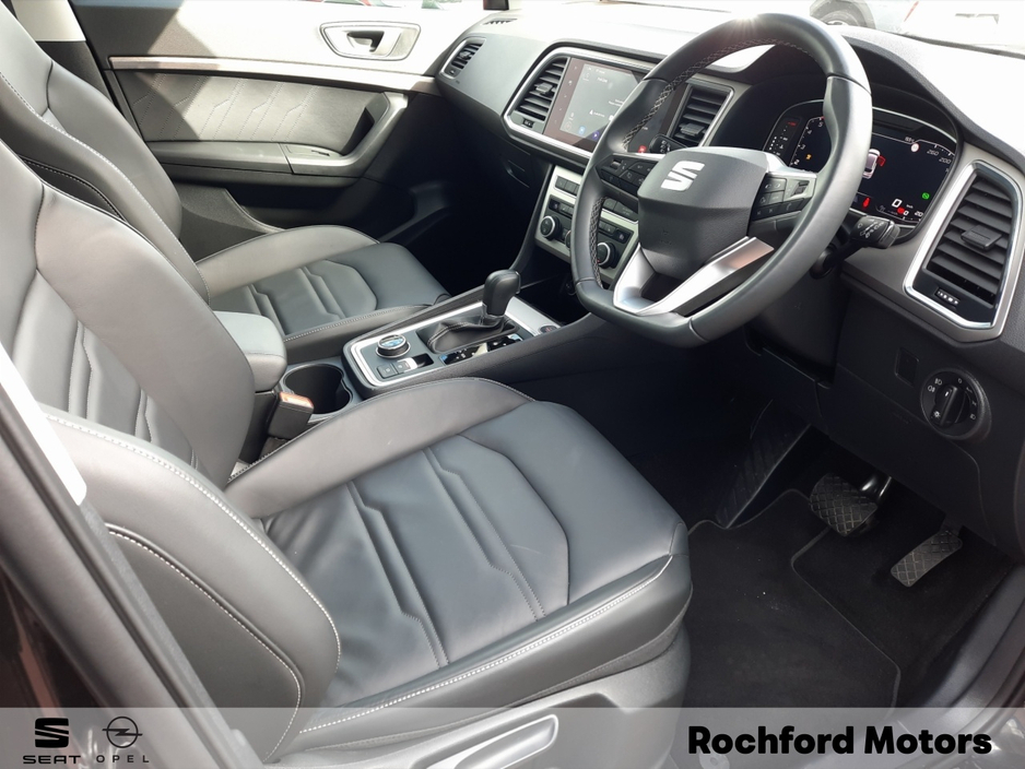Lovely 1 owner XP Plus Ateca 150HP with only 13200kms!! Straight sale price shown, price with a trade in €41950 Low rate PCP and HP Finance available from 4.9% APR 2 year warranty! 18 Machined Alloy Wheels Full LED Lights LED Front Fog Lights with Cornering 9.2 Navigation System Full Digital Cockpit Wireless Phone Charger Bluetooth (Media & Phone) DAB (Digital Radio) Keyless Entry & Start Brushed Metal Roof Rails Brushed Metal Window Surrounds Dark Tinted Rear Windows Climacoat Windscreen (Heated) Lane Assist with Side & Exit Assist Traffic Sign Recognition Drive Profile Select Full Link SEAT Connect Front & Rear Parking Sensors Park Assist Rear View Camera Adaptive Cruise Control Advanced Interior Ambient Lighting Scuff Plates in Door Illuminated Illuminated Mirror in Visors 2 Zone Air Conditioning Air Quality Sensor & AirCare Filter Leather Sports Steering Wheel Black Leather Interior Light Assist (Auto High Beam) Light & Rain Sensor Auto-Dimming Rear View Mirror Lumbar & Height Adjustment for Front Seats Hands-Free Electric Tailgate Electronic Parking Brake Front & Rear Electric Windows Reading Lights in Front & Rear USB C Ports (2 Front & 2 Rear) Spare Wheel (Spacesaver) Dynamic Traction Control (XDS) Driver & Passenger Airbags 2 Curtain Airbags, Front Side & Driver Knee Airbag Front & Rear Seatbelt Reminder Front Assist (Automatic Emergency Braking) Tiredness Recognition