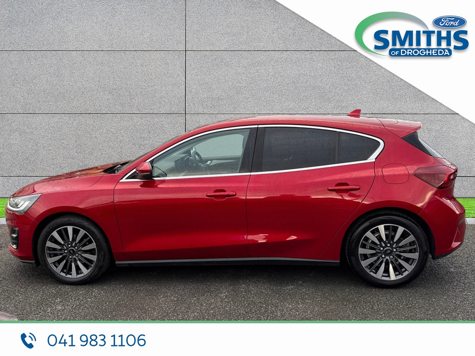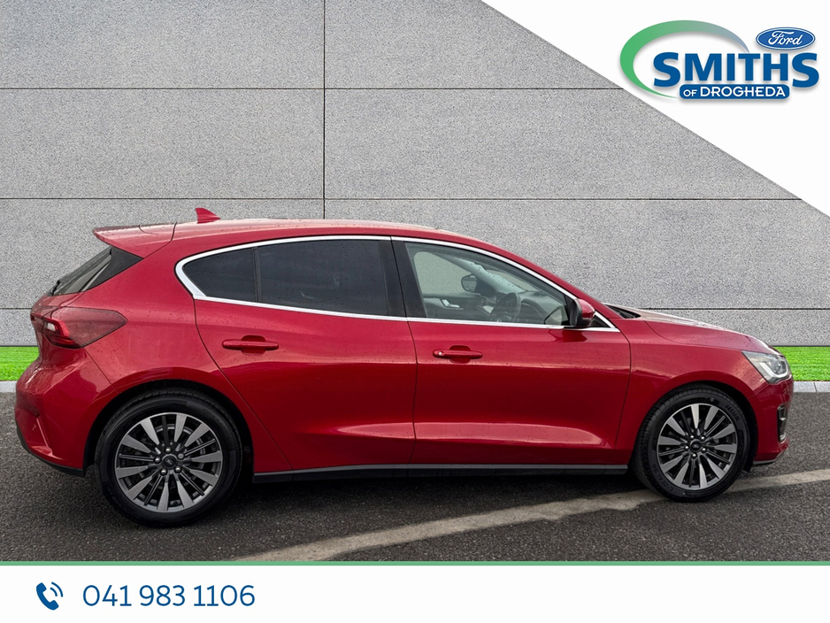 FREE NATIONWIDE DELIVERY Retail price €25,950 Straight selling price €24,950 This high spec Ford Focus Vignale will be sold with a full service, fresh valet & 7yr/100,000km warranty. Warranty expiry 04/2029. 2022 (221) 1.0 Petrol, 125PS, 6SP MANUAL Fantastic Red Full leather interior F & R sensors Heated seats & steering wheel Heated windscreen 17" alloy wheels A/C Automatic lights Apple car-play / Android Auto SMITHS OF DROGHEDA A TRADITION OF PUTTING YOU FIRST! *CELEBRATING 90YRS IN 2026* Low-rate bank beating finance rates available. Call and collect, buy with total confidence. All vehicles are prepared & serviced to the highest standards by our trained technicians. Due to a high turnover of stock please call our sales team in advance of viewing to ensure the car of interest is still available. 041-983 1106 Sales@smithsofdrogheda.com