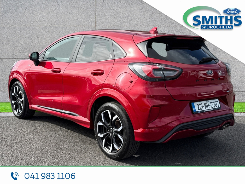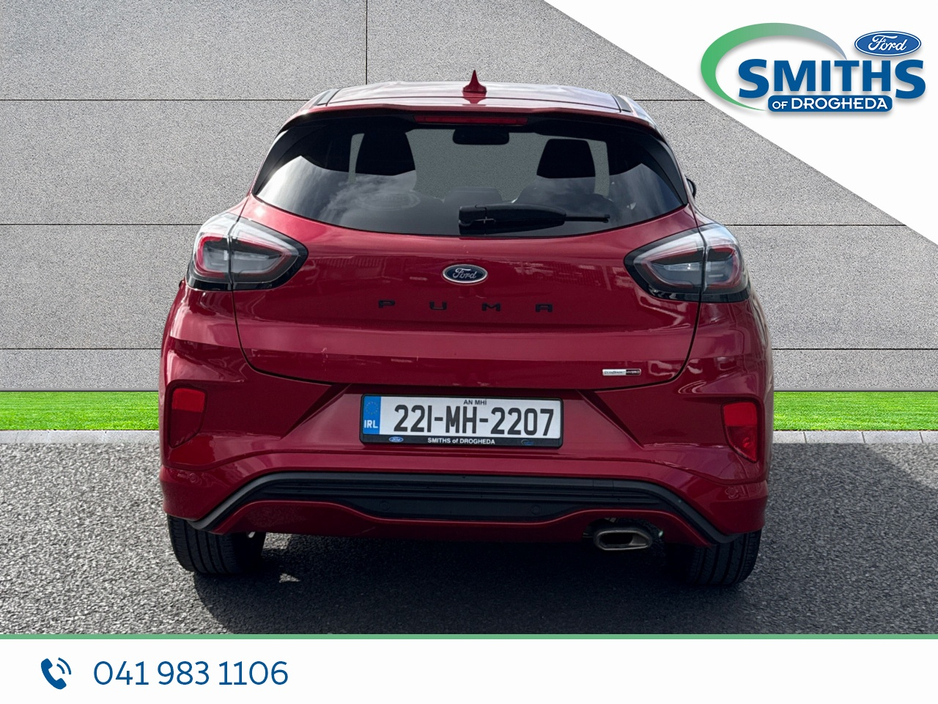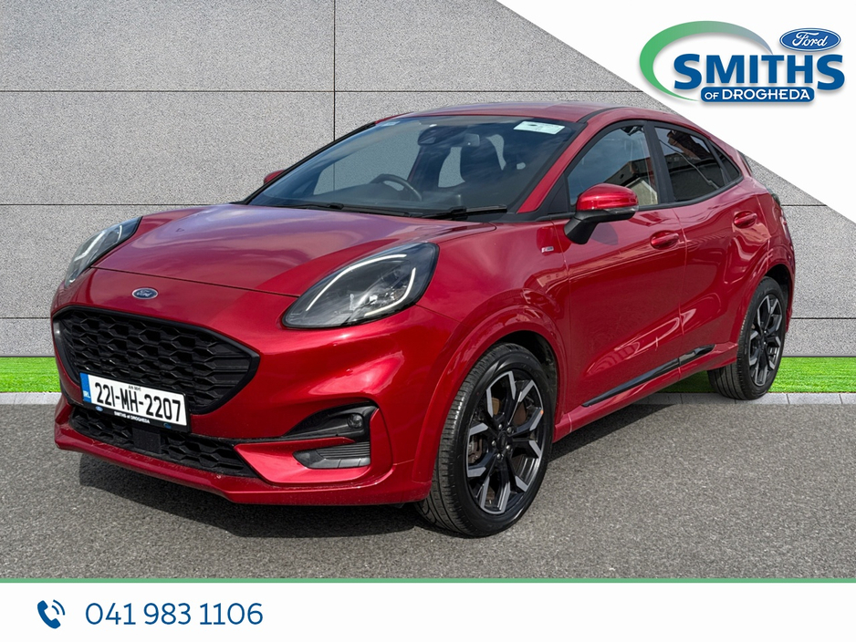 FREE NATIONWIDE DELIVERY Retail price €23959 Straight selling price €22950 This fantastic red Ford Puma will be sold with a full service, fresh valet & 7yr/100,000km warranty. Warranty expiry 03/2029. 2022 (221) 1.0 Petrol, 125PS, 6SP MANUAL Fantastic Red Half leather interior Rear sensors Heated windscreen 18" alloy wheels A/C Automatic lights Apple car-play / Android Auto SMITHS OF DROGHEDA A TRADITION OF PUTTING YOU FIRST! *CELEBRATING 90YRS IN 2026* Low-rate bank beating finance rates available. Call and collect, buy with total confidence. All vehicles are prepared & serviced to the highest standards by our trained technicians. Due to a high turnover of stock please call our sales team in advance of viewing to ensure the car of interest is still available. 041-983 1106 Sales@smithsofdrogheda.com