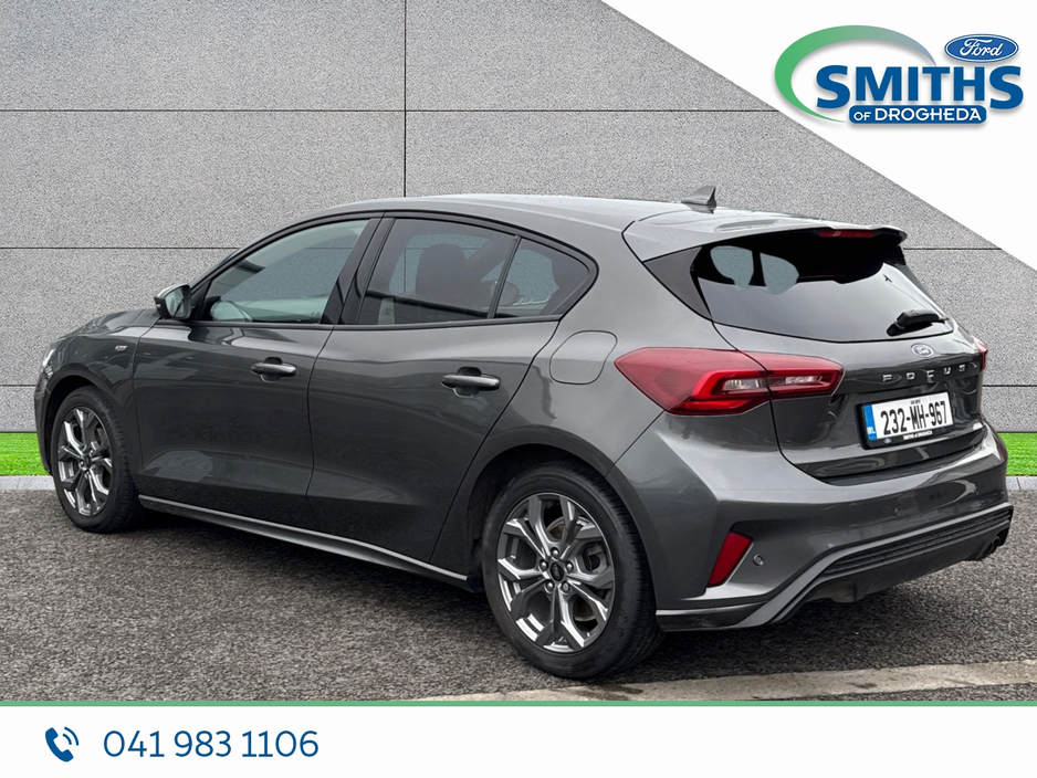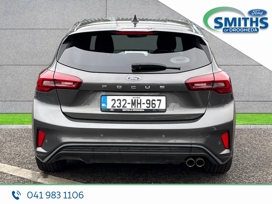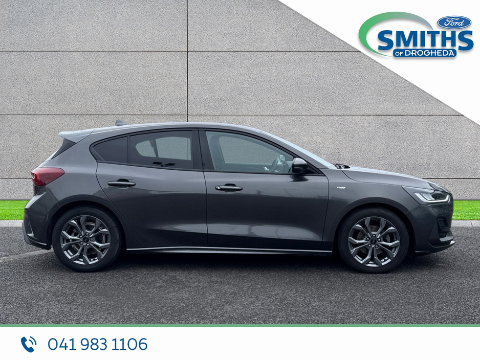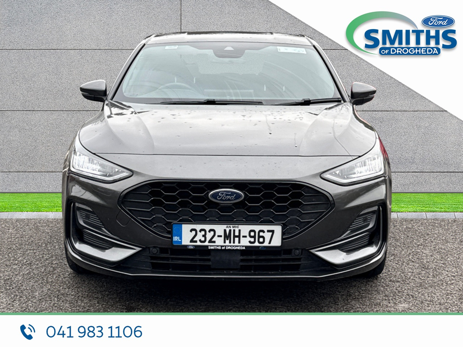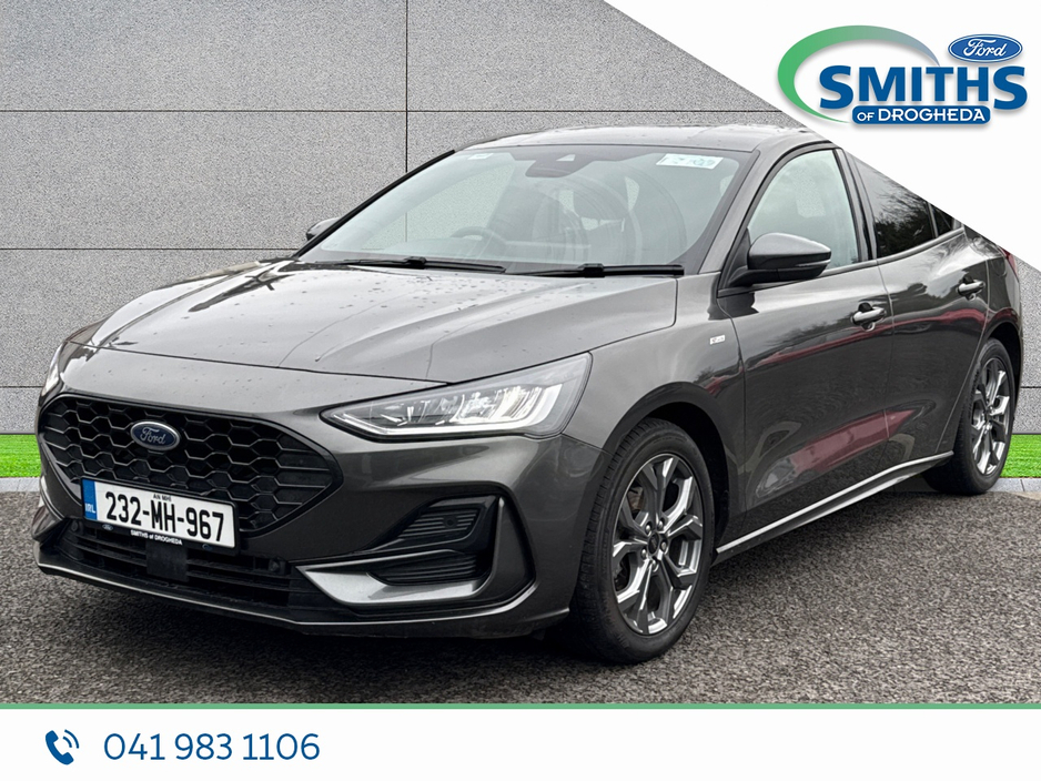 FREE NATIONWIDE DELIVERY Retail price €25950 Straight selling price €24950 This sharp looking Ford Focus will be sold with a full service, fresh valet & 5yr/100,000km warranty. Warranty expiry 07/2028 . 2023 (232) 1.0 Petrol, 125PS, 6SP MANUAL Magnetic Grey Cloth interior Heated windscreen 17" alloy wheels A/C Automatic lights Apple car-play / Android Auto SMITHS OF DROGHEDA A TRADITION OF PUTTING YOU FIRST! *CELEBRATING 90YRS IN 2026* Low-rate bank beating finance rates available. Call and collect, buy with total confidence. All vehicles are prepared & serviced to the highest standards by our trained technicians. Due to a high turnover of stock please call our sales team in advance of viewing to ensure the car of interest is still available. 041-983 1106 Sales@smithsofdrogheda.com Central Locking, Electric Windows, Airbag, Cruise Control, Fog Lamps, Rear Spoiler, Privacy Glass, Centre Armrest, Multi-function steering wheel, Satellite Navigation, Traction Control, Anti-Theft System, Parking Sensors, Bluetooth, EBD, Isofix, Apple Car Play, Android Auto, Active Safety Braking / City Brake / Collision Alert, Stop/Start Button, External Devices Connectivity, Cup holders, Remote boot/hatch/rear door release, Stability control