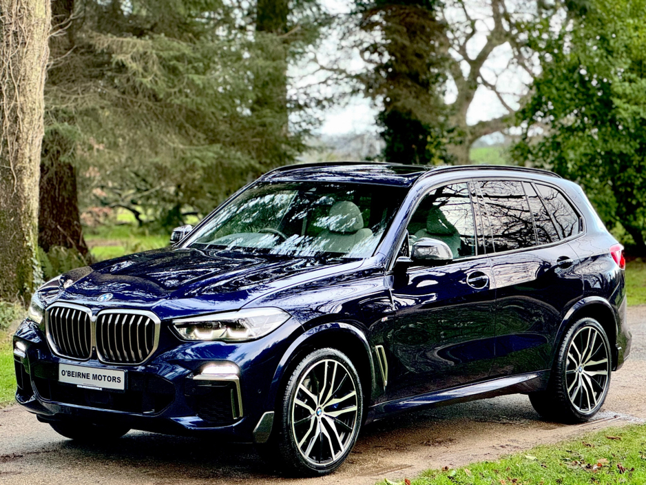 2020 202 Reg BMW X5 M50D MSPORT finished in Tanzanite Blue pearl with an Ivory white leather upholstery. Full BMW digital service record in excellent condition through out. Unmodified, unabused example with a high spec list. * Trade ins are welcome * Finance arranged * Log onto www.obeirnemotors.ie O'Beirne motors is a third-generation family run business training from the same premises since 1970. Situated in the heart of county Wicklow just 30 minutes' drive from Dublin and 20 minutes from Wexford. We take pride in sourcing the best used cars and 4x4 available. To add to this all our stock goes through a full mechanical inspection before sale and comes both fully serviced and meticulously detailed and valeted. All our cars also come with a full comprehensive warranty ranging from 3 to 24 months. We offer a wide range of finance packages @ the lowest APR % rates available. Viewings are by appointment only Contact us anytime by Calling or WhatsApp to 0872397427 Central Locking, Electric Windows, Airbag, Fog Lamps, Rear Spoiler, Centre Armrest, Multi-function steering wheel, Roof Rails, Satellite Navigation, Traction Control, Anti-Theft System, Parking Sensors, Bluetooth, EBD, Isofix, Active Safety Braking / City Brake / Collision Alert, Stop/Start Button, External Devices Connectivity, Cup holders, Remote boot/hatch/rear door release, Stability control