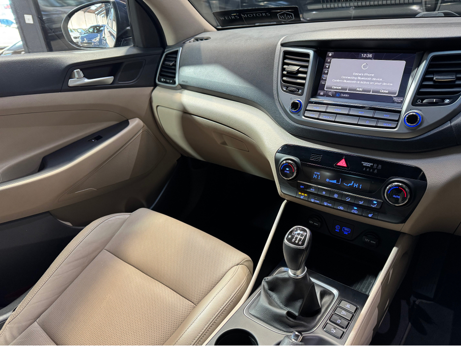**Viewing By Appointment** 2018 (181) Hyundai Tucson 1.6 Petrol with only 93,350km finished in blue Features Include *Sat Nav *Front Heated Seats *Full Leather *Only 93,350km *Multi Function Steering Wheel *Cruise Control *2 Keys *A/C *Dual Climate Control *Bluetooth Radio Welcome to Weirs Motors we are a Simi Registered Dealer Located at 4 Greenhills Road Walkinstown Dublin 12 Eircode - D12Y670 All Our Cars Include Warranty Nct Service Motorcheck Report Fully Valeted Optional 12 or 24 Months Nation Wide Warranty. Finance Can Be Arranged Contact Our Dedicated Sales Team on ( Karl - 0874540043 ) ( Troy - 0873986339 ) ( Landline - 014604550 ) Or Email Sales@weirsmotors.ie - Follow us on Facebook & Instagram to see our latest deals Central Locking, Electric Windows, Airbag, Fog Lamps, Rear Spoiler, Privacy Glass, Centre Armrest, Multi-function steering wheel, Roof Rails, Satellite Navigation, Traction Control, Anti-Theft System, Parking Sensors, Bluetooth, EBD, Isofix, Active Safety Braking / City Brake / Collision Alert, Stop/Start Button, External Devices Connectivity, Cup holders, Remote boot/hatch/rear door release, Stability control