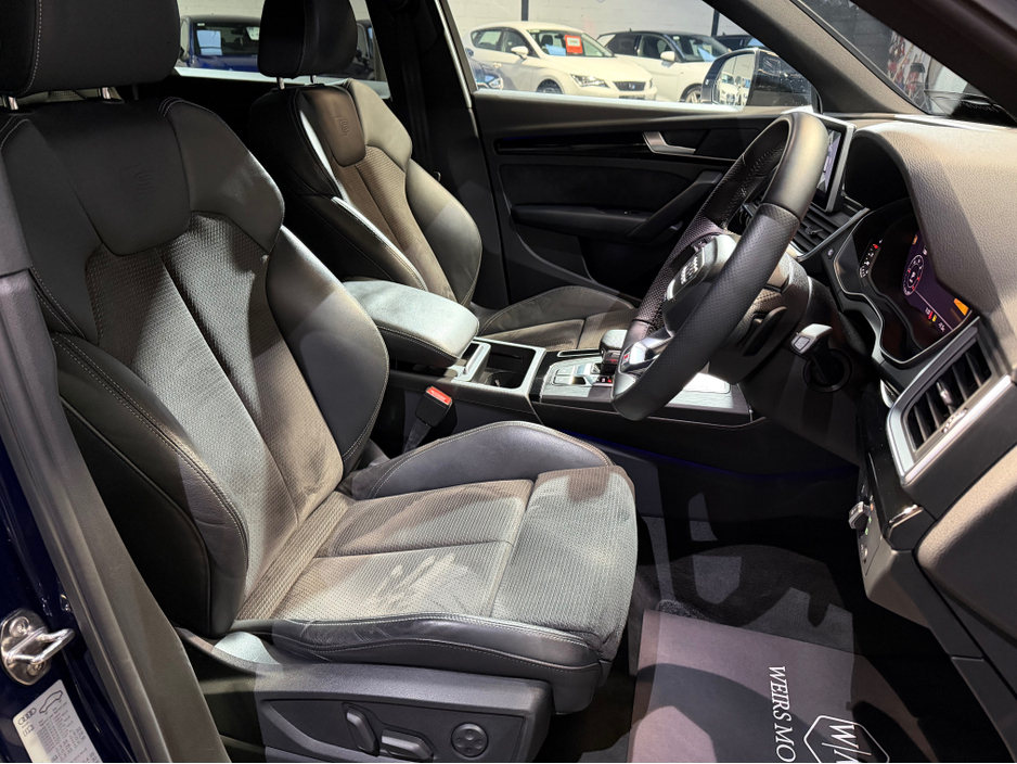Viewings by Appointment Only 2020 Audi Q5 2.0 40TDI Quattro Automatic S-Line with only 56,303km Producing 187Bhp Finished in Metallic Blue Features Include *Flat Bottom Steering Wheel *Virtual Clocks *Multi Function Steering Wheel *Cruise Control *Lane Assist *Front Memory seats *Front Electric Seats *Dual Climate Control *A/C *Keyless *Reverse Camera *360 Degree Camera *Front Heated Seats *Parking Assist *Auto Hold *Cruise Control *Bluetooth Radio Welcome to Weirs Motors, a SIMI Registered Dealer with over a decade of experience, specialising in high-specification vehicles that are carefully curated and presented to the highest standard. Customer satisfaction is at the core of our business. We have built a strong reputation based on trust, transparency, and quality, offering a professional and dependable purchasing experience where our customers can buy with complete confidence. Location 4 Greenhills Road Walkinstown, Dublin 12 Eircode D12 Y670 Our Standard of Preparation Every vehicle is meticulously prepared and includes Comprehensive Warranty Valid NCT Full Pre-Delivery Service MotorCheck Vehicle History Report Professionally Detailed Valet Optional 12 or 24-Month Nationwide Extended Warranty Specifications may vary. Please contact our sales team to confirm the features of any vehicle of interest. Tailored Finance Options Available We are a credit intermediary, allowing us to offer flexible finance packages tailored to your needs. Contact Sales (Karl- 0874540043) (Troy-0873986339) (Kelvyn-0874402378) (LandLine 01-4604550) Email sales@weirsmotors.ie Due to our high turnover of vehicles, cars cannot be reserved until a deposit is received. Follow Weirs Motors on Facebook & Instagram to view our latest arrivals and exclusive offers. Central Locking, Electric Windows, Airbag, Rear Spoiler, Centre Armrest, Multi-function steering wheel, Roof Rails, Satellite Navigation, Traction Control, Metallic Paint, Parking Sensors, Bluetooth, EBD, Isofix, Active Safety Braking / City Brake / Collision Alert, Stop/Start Button, External Devices Connectivity, Cup holders, Remote boot/hatch/rear door release, Stability control
