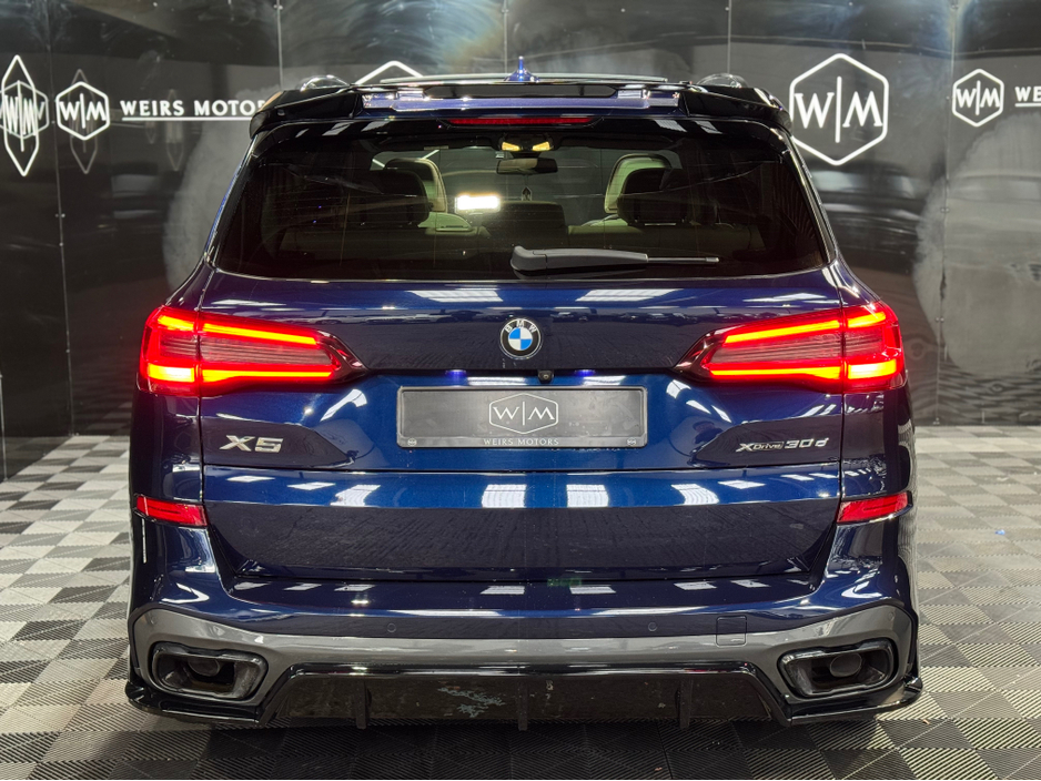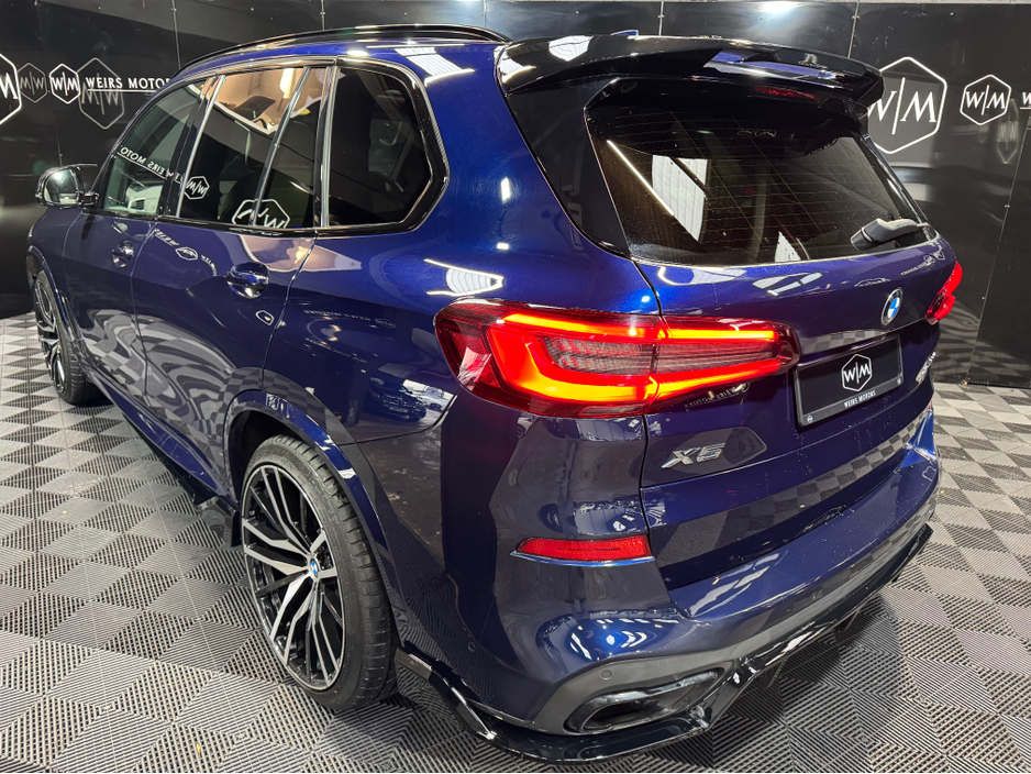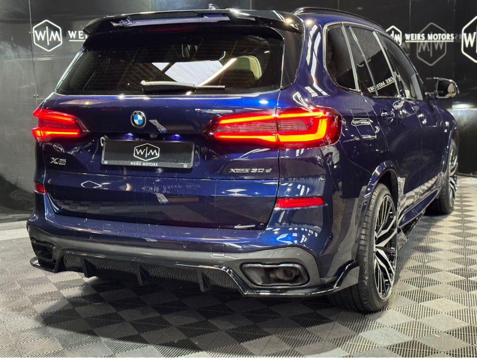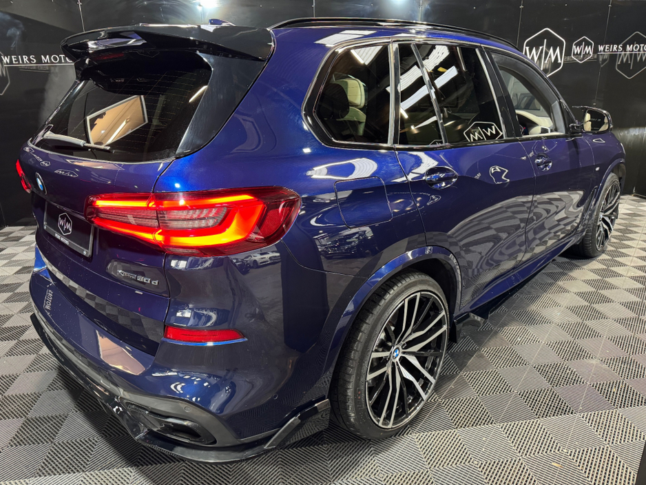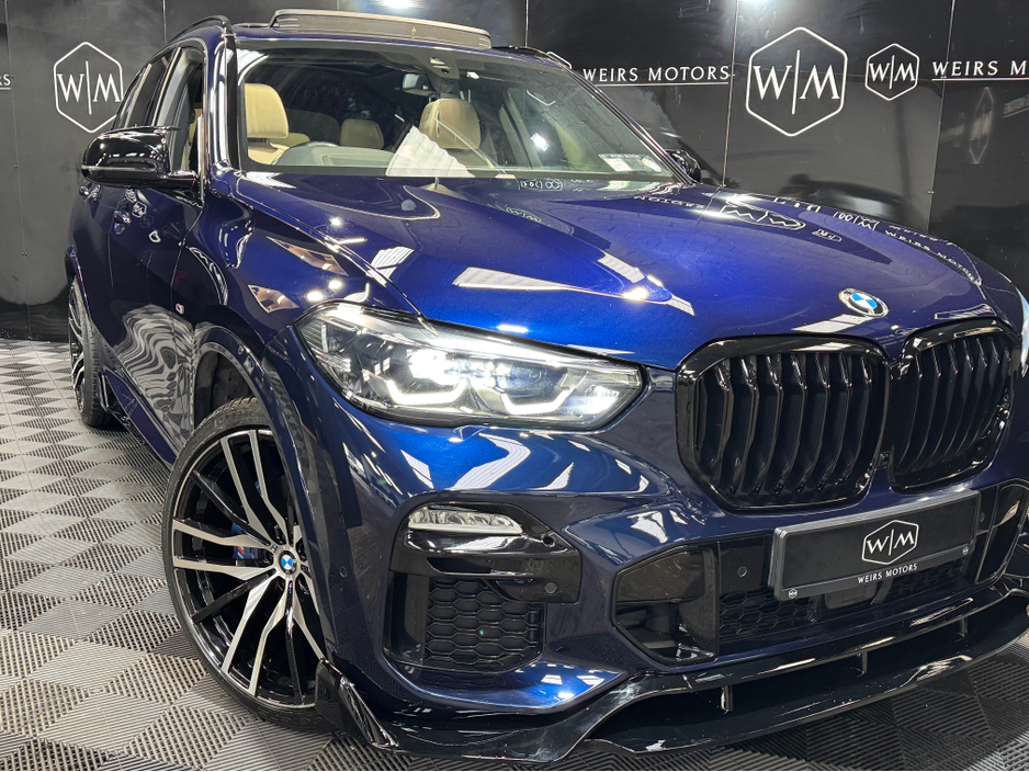 **Viewing By Appointment** 2022 (221) BMW X5 30D X-Drive M-Sport 5 Seater Diesel Automatic 282BHP With 110,314Kms With Service History, Finished in Tanzanite Blue. Features Include * Harman Kardon sound system *Sky Lounge *Tilt &Slide Sunroof *Apple/Android Play *Cream Leather Interior *Spot Lights *Heated/Cooling Cup Holders *Front/Rear Heated Seats *BMW Service History *Front Electric Seats *Digital Dash *Electric Tail Gate *Sat Nav *Reverse Camera *Ambient Lighting *Dual Climate Control *Heated Steering Wheel *Heads Up Display * M-Sport *X-Drive *22 Alloys Welcome to Weirs Motors we are a Simi Registered Dealer Located at 4 Greenhills Road Walkinstown Dublin 12 Eircode - D12Y670 All Our Cars Include Warranty Nct Service Motorcheck Report Fully Valeted Optional 12 or 24 Months Nation Wide Warranty. Finance Can Be Arranged Contact Our Dedicated Sales Team on (Karl- 0874540043) (Troy-0873986339) (Kelvyn-0874402378) (LandLine 01-4604550) Or Email Sales@weirsmotors.ie - Follow us on Facebook & Instagram to see our latest deals M50d Sq7 Svr Central Locking, Electric Windows, Airbag, Fog Lamps, Rear Spoiler, Centre Armrest, Multi-function steering wheel, Roof Rails, Satellite Navigation, Traction Control, Anti-Theft System, Parking Sensors, Bluetooth, EBD, Isofix, Active Safety Braking / City Brake / Collision Alert, Stop/Start Button, External Devices Connectivity, Cup holders, Remote boot/hatch/rear door release, Stability control