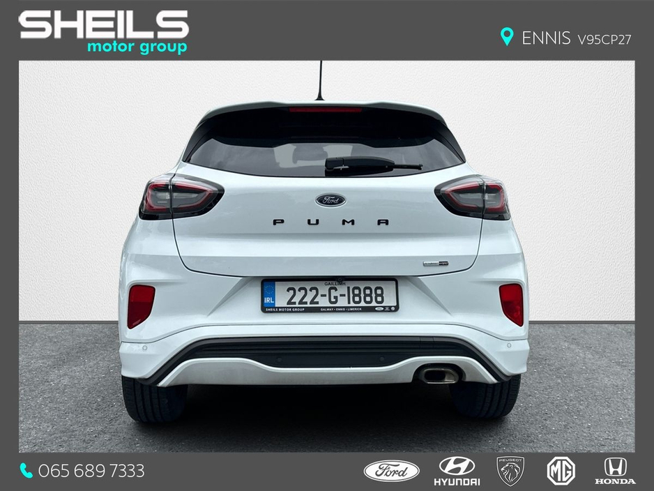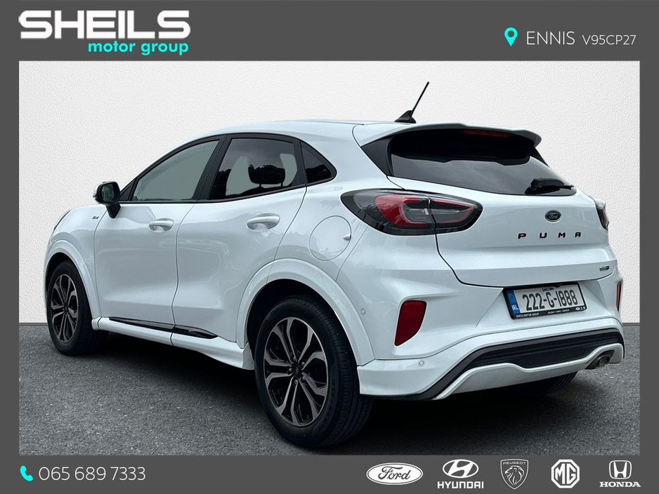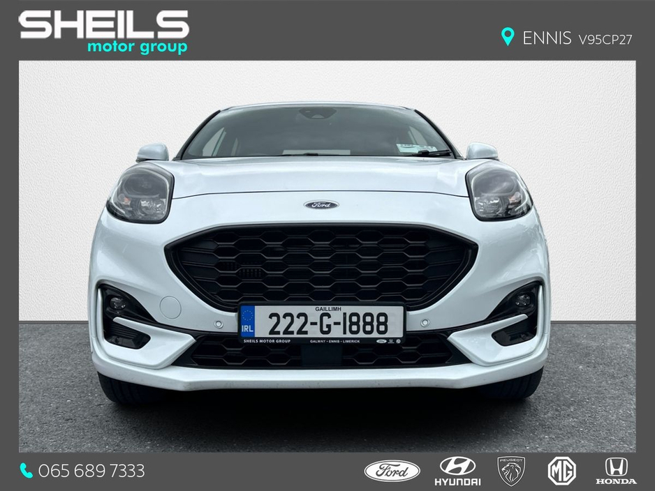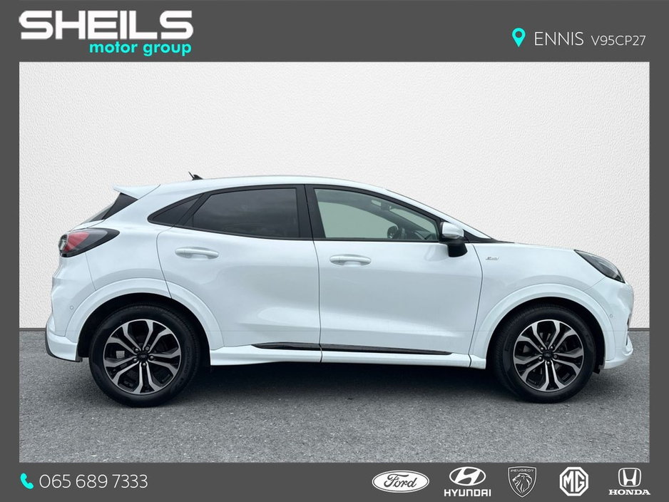 The Straight Deal Discount Price is €24,450 (With a Scrappage Allowance) Our Retail Price is €25,450 - Ford Puma - ST-Line Model - 1.0 Petrol Hybrid - One Owner - Massive Spec • ST-Line Alloy Wheels • ST-Line Bodykit Design • ST-Line Red Stiched Interior • ST-Line Steering Wheel • Multifunction Steering Wheel • Cruise Control • Auto Lights • Parking Sensors • Reversing Camera • Touchscreen Radio • Sat Nav • Apple CarPlay / Android Auto • Auto Wipers • Air Con Please contact Sheils Motor Group if you would like a valuation on your trade-in. Same-day, extremely competitive finance arranged & approved on-site, just ask! Full service, NCT & warranty on all vehicles sold by Sheils. 400 Approved Used cars & vans on www.sheils.ie Ennis 065 6897333 Galway 091 741100 Limerick 061 452244