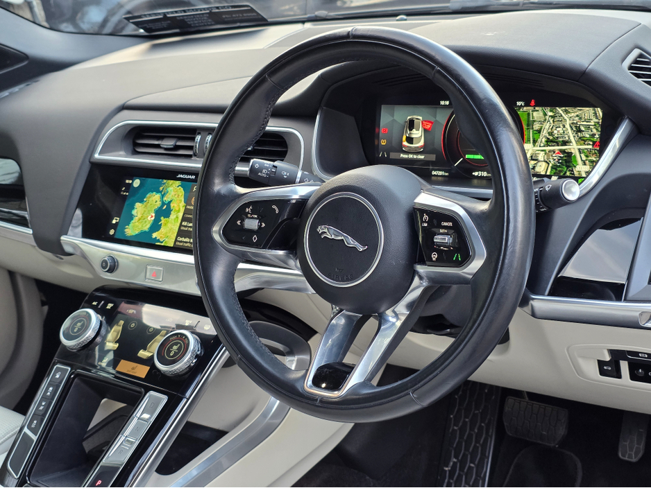 STUNNING 2022 JAGUAR I-PACE BLACK EDITION 400 BHP ELECTRIC FACE LIFT. FULL SERVICE HISTORY. VINSADHA2A15N1625079 Key Specifications & Features Performance -Power 395 bhp / 400 PS. -Torque 696 Nm. -0-100 km/h 4.8 seconds. -Top Speed 200 km/h (124 mph). -Drivetrain All-wheel drive (AWD). -Battery & Charging -Battery 90kWh. -WLTP Range Up to 470km (292 miles). -Charging 11kW onboard charger (8.6 hrs for full charge), 100kW DC rapid charging (0-80% in 40 mins). -Exterior (Black Pack) -Gloss Black grille, surrounds, lower front blades, mirror caps, side window surrounds, rear valance. -20-inch gloss dark grey/black wheels (some specs 22-inch). -Premium LED headlights & signature DRLs. -Fixed panoramic roof, rear privacy glass. VIEWING BY APPOINTMENT ONLY 7 DAYS A WEEK Flexible times available to suit you. NATIONWIDE DELIVERY AVAILABLE Fast, reliable transport anywhere in Ireland. SIMI DEALER 2026 Fully accredited by the Society of the Irish Motor Industry. ONLINE FINANCE AVAILABLE Apply easily through our new userfriendly website. OPEN SINCE 2002 Over 20 years of trusted experience in the motor trade. FAMILY OWNED A business built on trust, integrity, and personal service. APPROVED SIMI DEALER Committed to the highest industry standards. CREDIT INTERMEDIARIES Working with numerous finance houses to offer tailored finance options. Interior & Tech Infotainment Pivi Pro 10-inch touchscreen with Nav, Apple CarPlay, Android Auto. Audio Meridian Sound System. Comfort DuoLeather sports seats, 12-way electric memory front seats, heated front/rear seats. Driver Aids Adaptive Cruise Control, Lane Keep Assist, Blind Spot Assist, Rear Camera, Parking Sensors. Convenience Keyless Entry, Powered Tailgate, Wireless Device Charging. VIEWING BY APPOINTMENT ONLY 7 DAYS A WEEK Flexible times available to suit you. NATIONWIDE DELIVERY AVAILABLE Fast, reliable transport anywhere in Ireland. SIMI DEALER 2026 Fully accredited by the Society of the Irish Motor Industry. ONLINE FINANCE AVAILABLE Apply easily through our new userfriendly website. OPEN SINCE 2002 Over 20 years of trusted experience in the motor trade. FAMILY OWNED A business built on trust, integrity, and personal service. APPROVED SIMI DEALER Committed to the highest industry standards. CREDIT INTERMEDIARIES Working with numerous finance houses to offer tailored finance options. 12 Month Warranty, 2 Keys