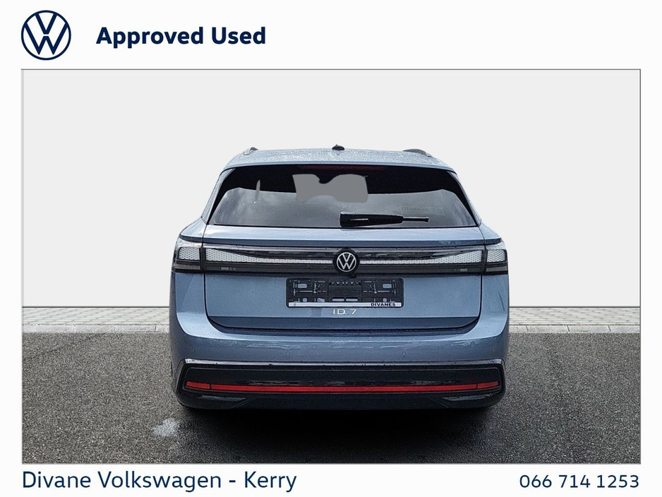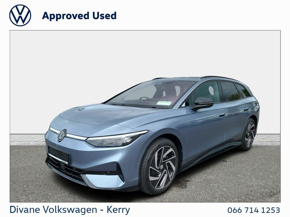 NEW ID.7 TOURER PRO PLUS 286HP 77KWH 615KM RANGE (BIG BATTERY) IN STONEWASHED BLUE METALLIC €120 ROAD TAX. CALL FOR MORE INFO! VOLKSWAGEN RETAIL PRICE: €56,400 UP TO €5,000 SCRAPPAGE DIVANE SSCRAPPAGE PRICE €51,400 • Keyless Acess • Mud Flaps • LED Tail Lights • Electric folding mirrors • Rear View Camera • Parking sensors • Park Assist • Lane Assist • Keyless Locking & Starting • Plastic Boot Liner • Front Assist • DYNAMIC ROAD SIGN DISPLAY • App Connect • Adaptive cruise control • Full Service History • Privacy Glass • Metallic Paint • Front Fog Lights • Heated Windscreen • Led Lights • LED Headlamps • IQ. LIGHT • VW Bank Finance Available • Finance Available • Wireless Charging • Technology Pack • Rubber Floor Mats • Electric Windows • Heated Steering Wheel • Dynaudion sound system • Dynaudio Sound System • Ambient Lighting • Active info display Clocks • Rubber Boot Mat • Reversing Camera • Alarm • Adjustable Steering Column • Satellite Navigation • Power Steering • Parking Assistance • Hill Hold • Cruise Control • Auto Lights and Wipers • Auto Handbrake • Air Conditioning • Immobilizer • Flat Tyre Indicator • Daytime Running Lights • Child Locks • Side Airbag • Passenger Airbag • Driver Airbag • Lumbar Support • Electric Mirrors • Chrome Package • Alloy Wheels • USB • Touchscreen Stereo • Onboard Computer • Multi-Function Steering Wheel • Mobile Device Interface (media-in) • ABS • Leather Multi-functional Steering Wheel • Heated Seats • Electrically Adjustable Seats • Dual Climate-Control • Climate Control • Bluetooth Phone • Armrest