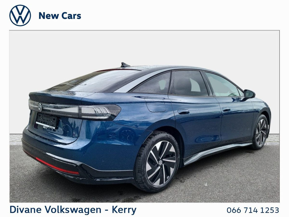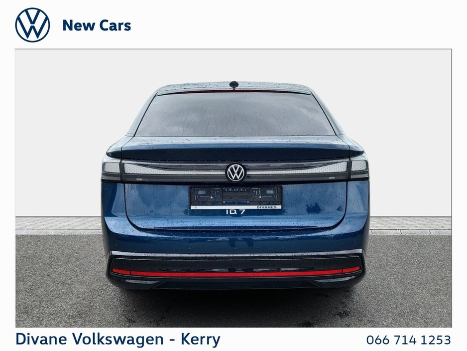 NEW ID.7 PRO S PLUS 86KWH 286BHP AQUARMARINE BLUE METALLIC €120 ROAD TAX. Volkswagen RETAIL PRICE: €59990 €3,500 seai grant volkswagen retail price: €56,400 • ABS • Child Locks • Daytime Running Lights • Flat Tyre Indicator • ISO Fix • Multiple Airbags • Immobilizer • Auto Handbrake • Auto Lights and Wipers • Hill Hold • Power Steering • Remote Central Locking • Satellite Navigation • Total Closure System • Adjustable Steering Column • Armrest • Bluetooth Phone • Dual Climate-Control • Heated Seats • Leather Multi-functional Steering Wheel • Lumbar Support • Split Fold Rear Seats • Touchscreen Stereo • USB • Alloy Wheels • Chrome Package • Electric Mirrors • Electric Windows • Front Fog Lights • Metallic Paint • Privacy Glass • Full Service History • Adaptive cruise control • App Connect • Front Assist • Lane Assist • Parking sensors • Rear View Camera • Active info display Clocks • Anti-Theft alarm • Arm Rests • Heads Up Display • Heated Steering Wheel • Wireless Phone Charging • VW Bank Finance Available • IQ. LIGHT