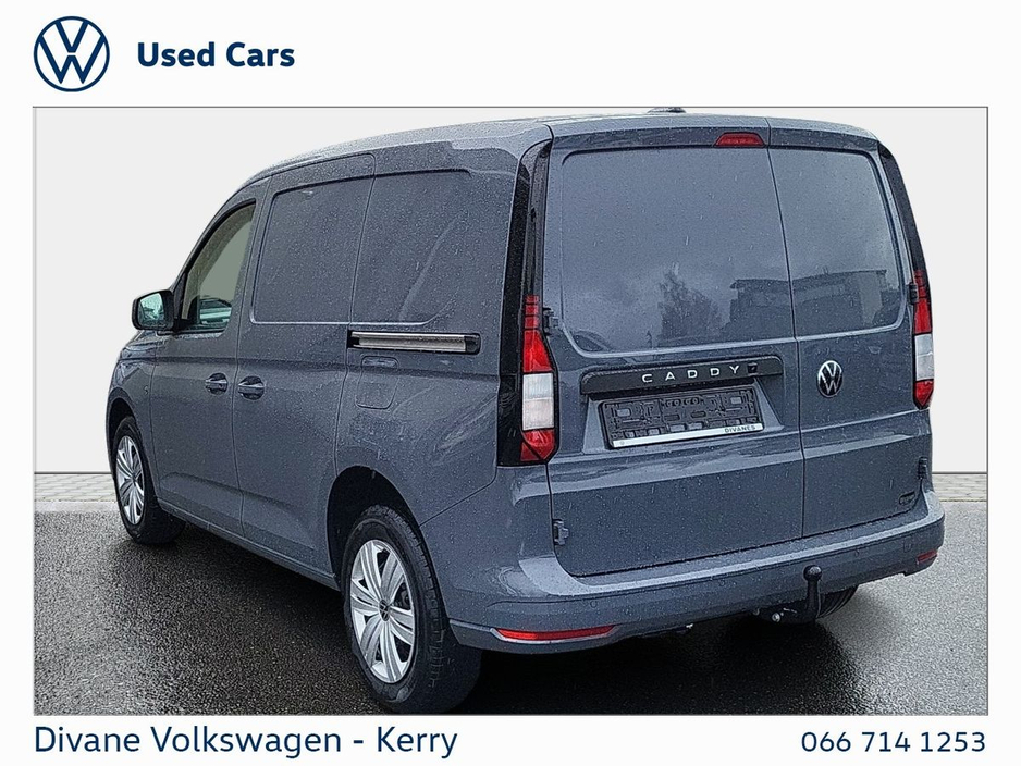 CADDY CARGO EDITION 2.0 TDI 102BHP IN MANUAL IN INDIUM GREY METALLIC EXTRAS: TOW BAR STEEL SPARE WHEEL WINDOW IN BULKHEAD BLACK ROOF RAILS LEATHERETTE SIDE BARS GLOSSY BLACK BACK BUMPER PROTECTOR VOLKWAGEN RETAIL PRICE; €37,100 €333 ROAD TAX. 5 YEAR WARRANTY • ABS • Child Locks • Daytime Running Lights • Flat Tyre Indicator • Multiple Airbags • Immobilizer • Auto Handbrake • Auto Lights and Wipers • Cruise Control • Hill Hold • Power Steering • Remote Central Locking • Satellite Navigation • Stop and Start System • Total Closure System • Adjustable Steering Column • Air Conditioning • Bluetooth Phone • Leather Multi-functional Steering Wheel • Lumbar Support • Onboard Computer • Touchscreen Stereo • USB • Alloy Wheels • Electric Mirrors • Electric Windows • Metallic Paint • Full Service History • Towbar • App Connect • Front Assist • Parking sensors • We Connect • Solid Bulkhead • Full Vat Receipt Available • VW Bank Finance Available • LED Lights
