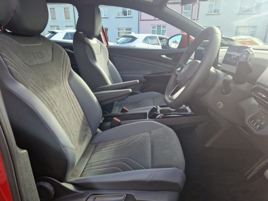 VOLKSWAGEN ID.4 PRO 77KWH 286BHP KINGS RED : €975 OTHER METALLIC PAINT OPTIONS: €785 VOLKSWAGEN RETAIL PRICE : €47,400 (INCLUDING KINGS RED OPTION) €3,500 SEAI GRANT €2,400 VRT REBATE VOLKSWAGEN PRICE AFTER GRANT: €41,000 KINGS RED : €975 PRICE OF ID.4 WITH KINGS RED ; €42,000 UP TO €5000 SCRAPPAGE DIVANES SCRAPPAGE PRICE : €37,000 CALL TO SEE IF YOUR VEHICLE QUALIFIES FOR SCRAPPAGE T&C'S APPLY • Alloy Wheels • CD player • Dual Climate-Control • Heated Seats • Leather Multi-functional Steering Wheel • Lumbar Support • Mobile Device Interface (media-in) • Onboard Computer • Radio/CD/MP3 • Touchscreen Stereo • USB • Bluetooth Phone • Electric Mirrors • Electric Windows • Metallic Paint • Full Service History • App Connect • Car Net • Front Assist • Lane Assist • Parking sensors • VW Bank Finance Available • Parking Assistance • Child Locks • Daytime Running Lights • Deadlocks • ESP • Flat Tyre Indicator • ISO Fix • Multiple Airbags • Auto Handbrake • Cruise Control • Hill Hold • ABS • Power Steering • Remote Central Locking • Satellite Navigation • Servotronic Steering • Stop and Start System • Total Closure System • Adjustable Steering Column • Air Conditioning • Armrest
