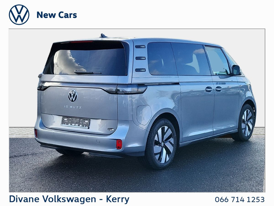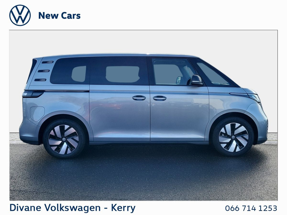 VOLKSWAGEN ID BUZZ STYLE 7 SEATER 86KWH 286HP 468KM RANGE IN ADDITION TO LIFE MODEL • STAINLESS STEEL PEDALS • LED MATRIX LIGHTS • IQ LIGHT • ELECTRIC SLDING DOORS WITH EASY OPEN AND CLOSE • 20 INCH ALLOYS • HEADS UP DISPLAY • HARMAN KARDON SOUND SYSTEM • ILUMINATED MOULDING BETWEEN HEADLIGHTS VOLKSWAGEN RETAIL PRICE: €77,800 €4,000 PURCHASE CONTRIBUTION RETAIL PRICEl€73,800 • Power Steering • Remote Central Locking • Passenger Airbag • Child Locks • Daytime Running Lights • Deadlocks • Flat Tyre Indicator • ISO Fix • Multiple Airbags • Immobilizer • Auto Handbrake • Auto Lights and Wipers • Hill Hold • IQ. LIGHT • ABS • Satellite Navigation • Stop and Start System • Total Closure System • Adjustable Steering Column • Armrest • Bluetooth Phone • CD player • Dual Climate-Control • Heated Seats • Leather Multi-functional Steering Wheel • Lumbar Support • Onboard Computer • Split Fold Rear Seats • Touchscreen Stereo • USB • Alloy Wheels • Electric Mirrors • Electric Windows • Front Fog Lights • Metallic Paint • Privacy Glass • Full Service History • Adaptive cruise control • App Connect • Car 2X Technology • Front Assist • Keyless Locking & Starting • Lane Assist • Parking sensors • We Connect • Active info display Clocks • Ambient Lighting • Heated Steering Wheel • Wireless Phone Charging • PANORAMIC SUNROOF • VW Bank Finance Available