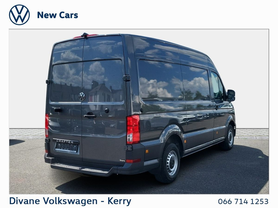 NEW CRAFTER HIGHLINE 30 MWB 140 BHP M6F IN INDIUM GREY METALLIC HIGH ROOF IN VEHICLE COLOUR MUD FLAPS FRONT & REAR SIDE MARKER LIGHTS COMFORT TELEPHONY SMOKERS PACKAGE FOUR 12V OUTLETS IN CAB SEAT TRIM LETHERETTE 'MESH' STEP INTEGRATED REAR BUMPER VOLKSWAGEN RETAIL PRICE: €51,200 €333 ROAD TAX. • Full Service History • VW Bank Finance Available