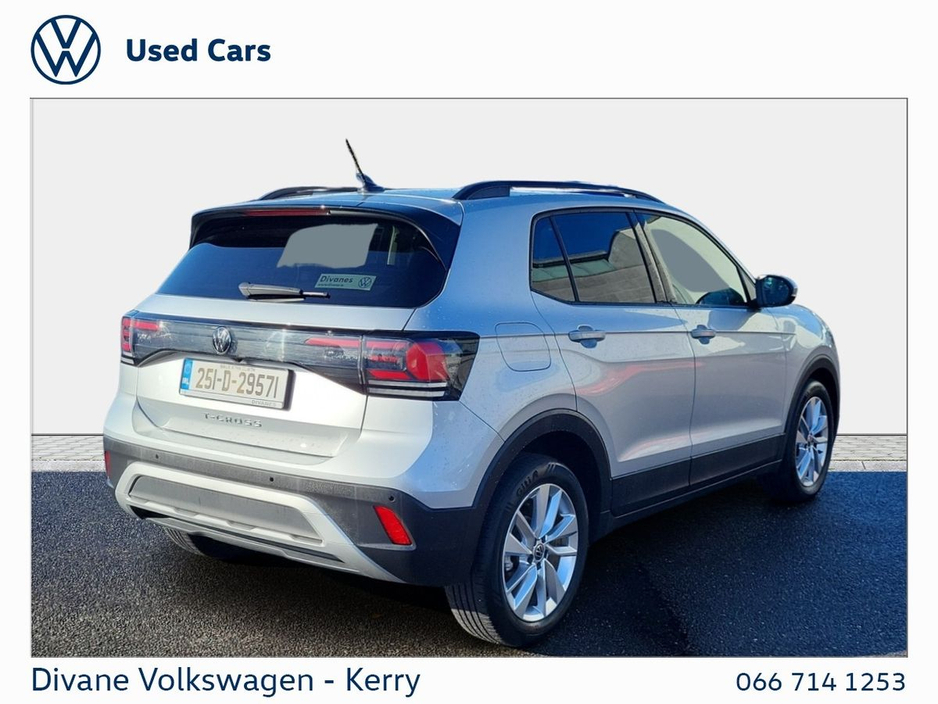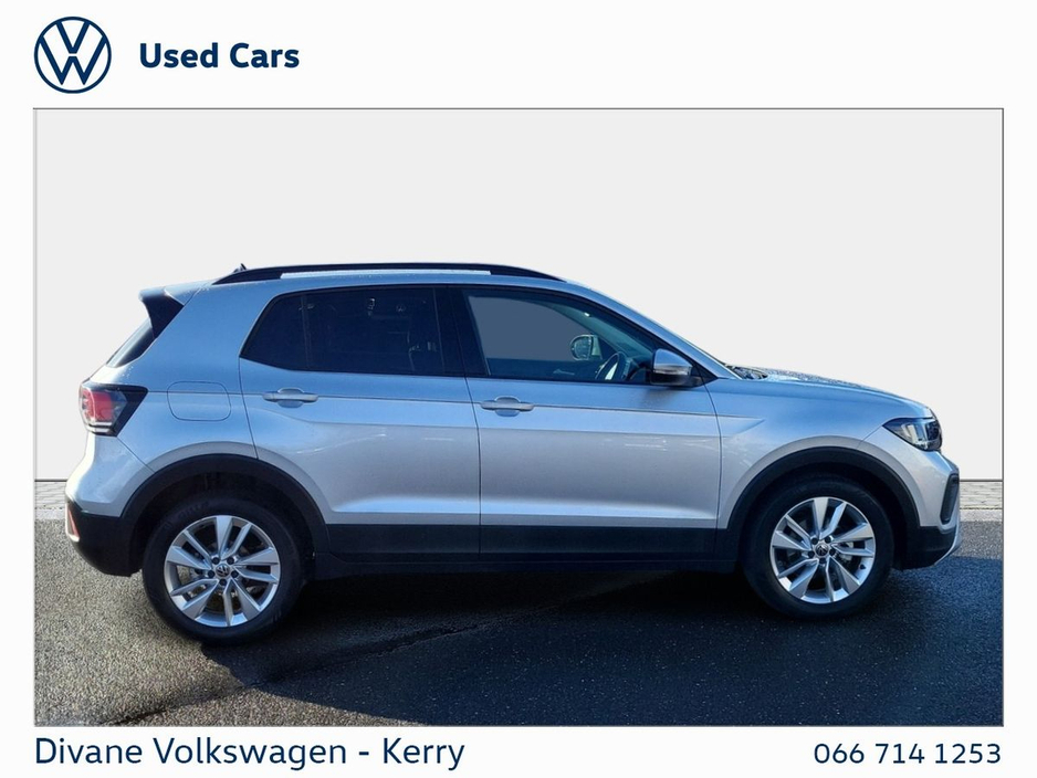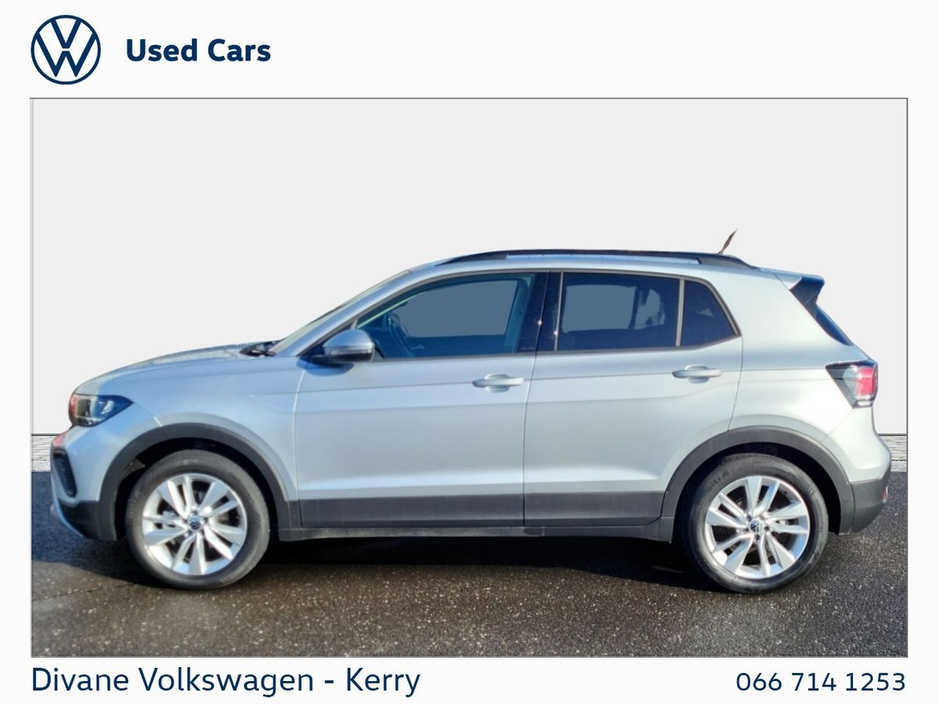 T-CROSS EDITION 75 1.0 AUTOMATIC 116 BHP IN REFLEX SILVER METALLIC €210 ROAD TAX. CALL FOR MORE INFO! • ABS • Android Auto • Radio • Traction control • Auto lights (dusk sensor) • Gear shift paddles • Emergency tyre repair kit • Leather steering wheel • 12v power outlet • Lane change assist • Air conditioning • Climate control • Keyless entry • USB connection (front) • Immobilizer • Cruise control • Tyre pressure monitor • Digital instrument panel • Bluetooth • Emergency brake assist • Adaptive cruise control • Daytime running lights • Isofix • Side airbag • Start-stop system • Alloy wheels • Dual zone climate control • Driver-side airbag • Armrest • LED headlights • Touch screen display • Front parking sensors • Rear parking sensors • Traffic sign recognition • Anti collision system • Apple CarPlay • Central locking • Remote central locking • Electric side mirrors • Electric windows • Passenger-side airbag • Lumbar support • Hill hold assist • Lane departure warning • Roof rails • Speed limiter • Stability control • Multi-function steering wheel • Full Service History • VW Bank Finance Available