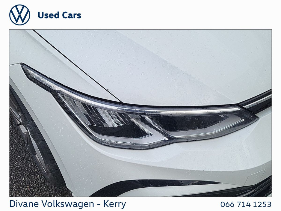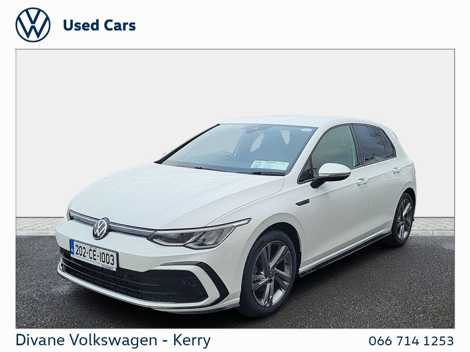 GOLF R-LINE 1.5 TSI 130 BHP IN ORYX WHITE PEARL EFFECT €190 ROAD TAX. CALL FOR MORE INFO! • Lane change assist • Android Auto • Apple CarPlay • Radio • Keyless entry • Electric handbrake • Lumbar support • Sports seats • LED headlights • Isofix • Lane departure warning • Tyre pressure monitor • Climate control • Dual zone climate control • Adaptive cruise control • Auto lights (dusk sensor) • Touch screen display • Remote boot release • Speed limiter • Start-stop system • ABS • Alarm system • Bluetooth • Emergency brake assist • USB connection (front) • Electric windows • Driver-side airbag • Passenger-side airbag • Hill hold assist • Stability control • Heated steering wheel • Multi-function steering wheel • Alloy wheels • Wifi • 12v power outlet • Air conditioning • Ambient lighting • Central locking • Immobilizer • Electric side mirrors • Heated seats • Navigation system • Front parking sensors • Rear parking sensors • Seat belt warning • Side airbag • Spoiler • Sport suspension • Multi zone climate control • Anti collision system • USB connection (rear) • Cruise control • Daytime running lights • Traction control • Armrest • Spare type • Voice control • Digital instrument panel • Parking camera • Leather steering wheel • Traffic sign recognition • Rain sensor • VW Bank Finance Available