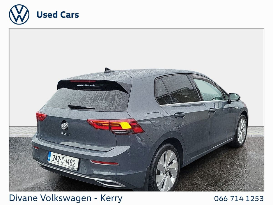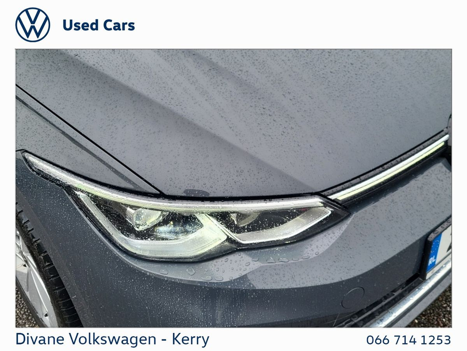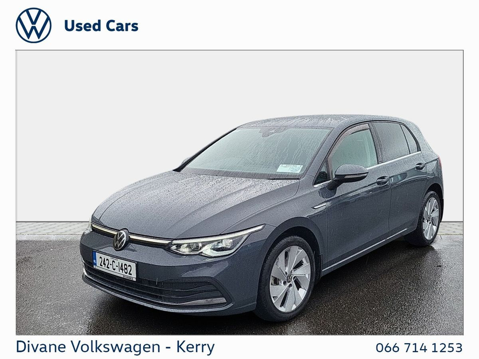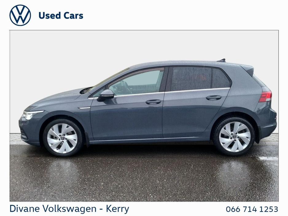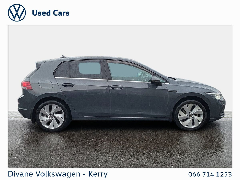 GOLF STYLE 1.5 TSI 130 BHP IN DOLPHIN GRAY METALLIC EXTRAS: TINTED REAR WINDOWS €200 ROAD TAX. • 12v power outlet • ABS • Lane change assist • Air conditioning • Climate control • Dual zone climate control • Multi zone climate control • Ambient lighting • Android Auto • Alarm system • Keyless entry • Cruise control • Adaptive cruise control • Electric side mirrors • Electric windows • Driver-side airbag • Auto lights (dusk sensor) • Hill hold assist • Tyre pressure monitor • Front parking sensors • Stability control • Start-stop system • Multi-function steering wheel • Traffic sign recognition • Emergency tyre repair kit • Anti collision system • Bluetooth • Central locking • Daytime running lights • Fog lights • Spoiler • Voice control • Wifi • Apple CarPlay • Radio • USB connection (front) • Navigation system • Rain sensor • Parking camera • Leather steering wheel • Emergency brake assist • Passenger-side airbag • Isofix • Lane departure warning • Remote boot release • Side airbag • Speed limiter • Digital instrument panel • Immobilizer • Electric handbrake • Traction control • Lumbar support • Armrest • LED headlights • Touch screen display • Rear parking sensors • Seat belt warning • Alloy wheels • Full Service History • VW Bank Finance Available