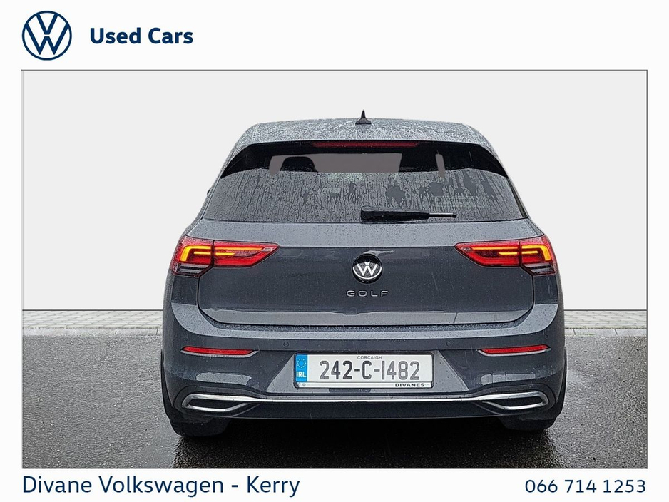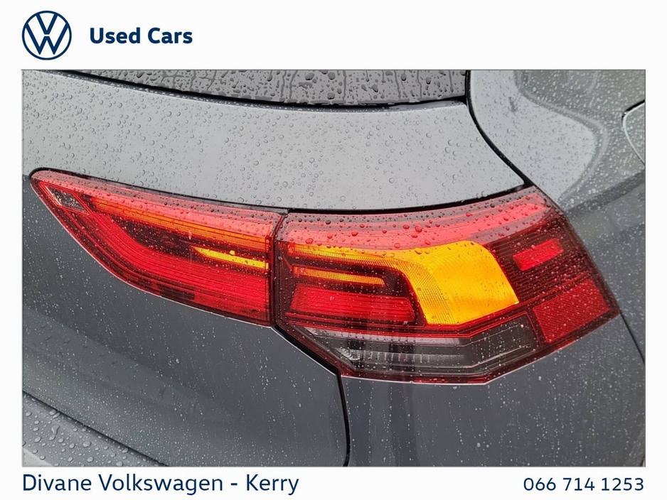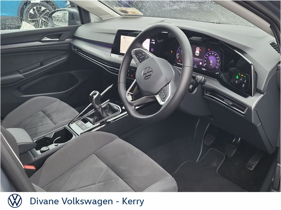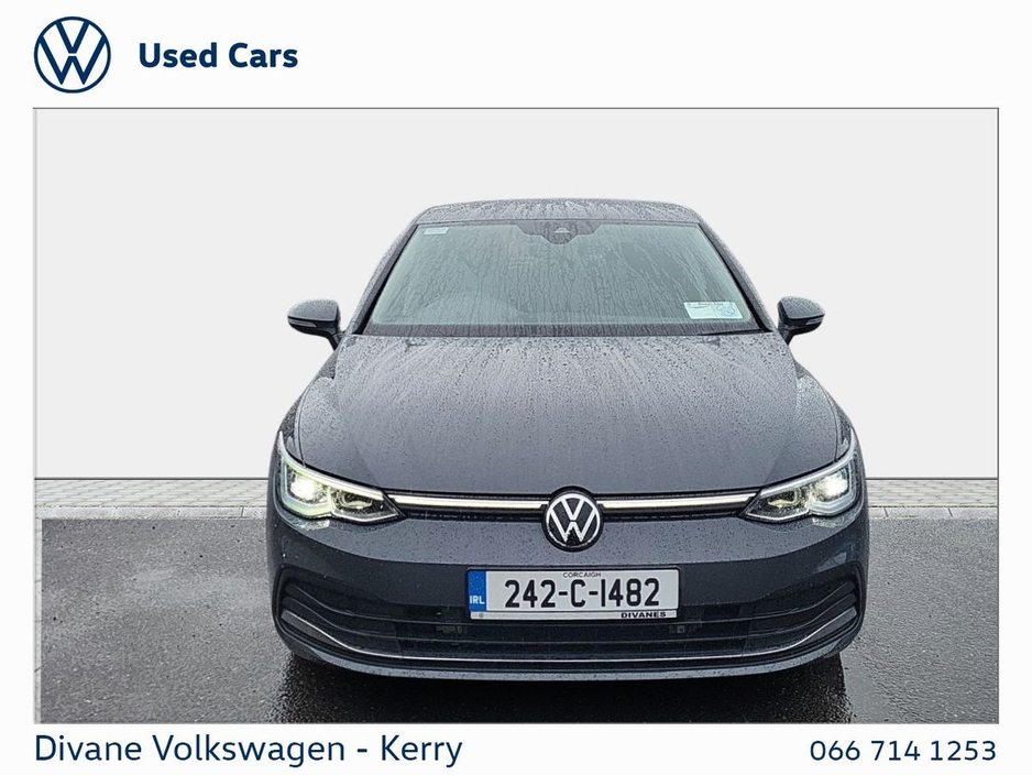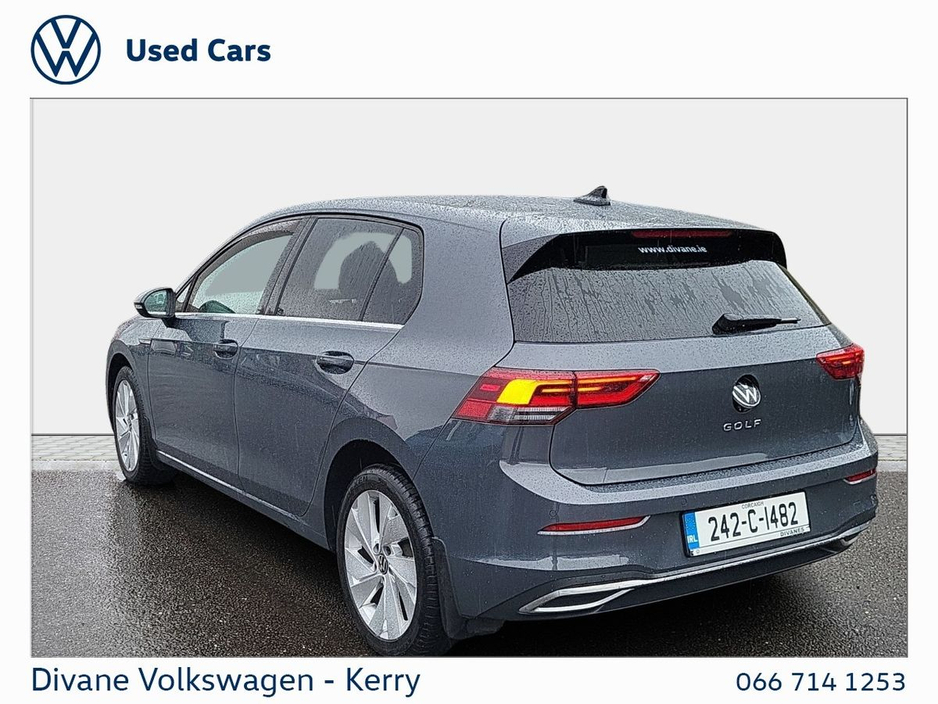GOLF STYLE 1.5 TSI 130 BHP IN DOLPHIN GRAY METALLIC EXTRAS: TINTED REAR WINDOWS €200 ROAD TAX. • 12v power outlet • ABS • Lane change assist • Air conditioning • Climate control • Dual zone climate control • Multi zone climate control • Ambient lighting • Android Auto • Alarm system • Keyless entry • Cruise control • Adaptive cruise control • Electric side mirrors • Electric windows • Driver-side airbag • Auto lights (dusk sensor) • Hill hold assist • Tyre pressure monitor • Front parking sensors • Stability control • Start-stop system • Multi-function steering wheel • Traffic sign recognition • Emergency tyre repair kit • Anti collision system • Bluetooth • Central locking • Daytime running lights • Fog lights • Spoiler • Voice control • Wifi • Apple CarPlay • Radio • USB connection (front) • Navigation system • Rain sensor • Parking camera • Leather steering wheel • Emergency brake assist • Passenger-side airbag • Isofix • Lane departure warning • Remote boot release • Side airbag • Speed limiter • Digital instrument panel • Immobilizer • Electric handbrake • Traction control • Lumbar support • Armrest • LED headlights • Touch screen display • Rear parking sensors • Seat belt warning • Alloy wheels • Full Service History • VW Bank Finance Available