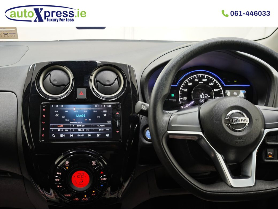 Welcome to AutoXpress.ie Luxury for less. Introducing our 2020 Reg. Nissan Note 1.2 E-POWER Hybrid Automatic Great finance options available warranty provided and trade ins welcome. Were also providing after sales service. Call our after sales team for more info. FINANCE CAN BE ARRANGED THROUGH OUR WEBSITE WWW.AUTOXPRESS.IE Comes with 3 months premium warranty Mileage 36,759 Miles. Nct 07/27 In-Door service check up Just serviced Fully valeted Vehicle history check available on request Competitive finance rates Featuring Comes with 3 months premium warranty Reversing camera Front and rear parking sensors Electric windows Electric mirrors Air conditioning Traction control Isofix Auxiliaries CD radio Auto lights Auto start stop Multifunction steering wheel Adjustable steering wheel Electric hand brake Bluetooth Automatic air-conditioning And much more. ? Call us in Limerick at 061-446033 or Galway at 091-335696 for more details or to schedule a test drive.