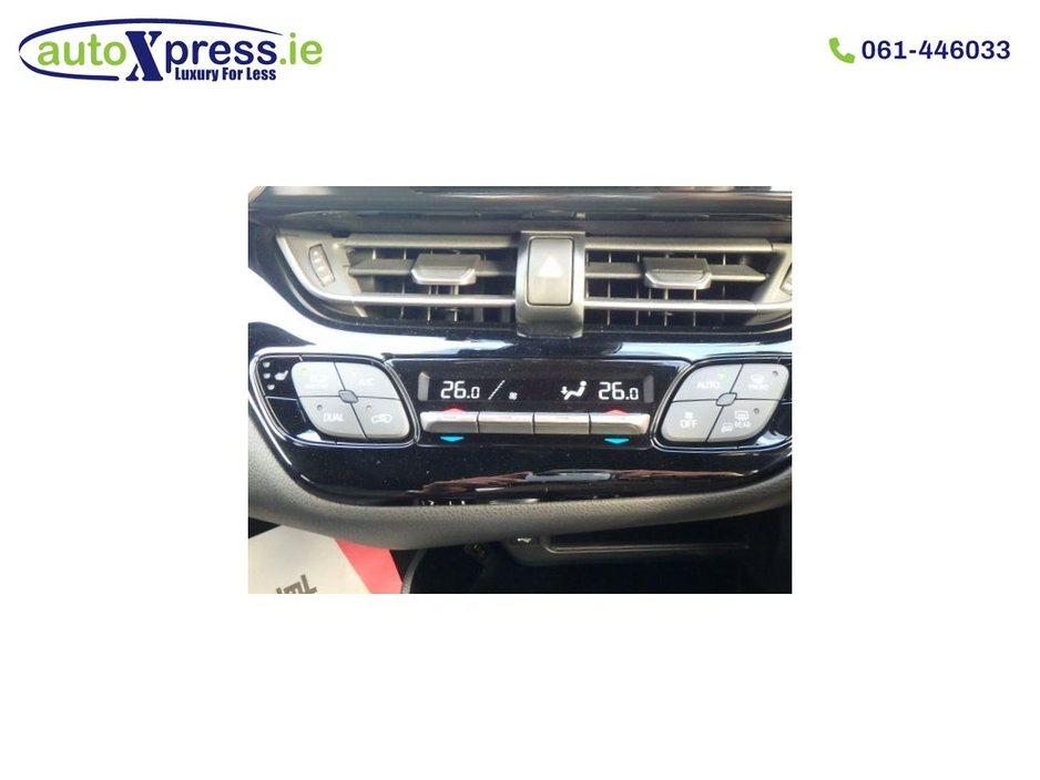 ? Welcome to AutoXpress.ie β Luxury for Less! Stand out from the crowd with this exceptional 2021 Toyota C-HR G. Blending the bold styling of a coupe with the practicality of a crossover, the C-HR is the ultimate expression of modern driving. Powered by Toyotaβs world-class 1.8 Litre Self-Charging Hybrid engine, it delivers a whisper-quiet, smooth, and incredibly efficient performance. This top-tier 'G' grade model is finished to a high standard, featuring a sophisticated cabin with premium materials and a commanding view of the road, making it the perfect choice for those who refuse to compromise on style or substance. ? Please Note: This vehicle is in transit and will be available soon! Why Choose AutoXpress.ie? 6 Months Premium Warranty Included β Drive with complete peace of mind. Trade-ins Welcome β Upgrade your vehicle hassle-free. Trusted After-Sales Service β We're here even after your purchase. All vehicles come fully serviced and valeted. Nationwide delivery available. In-house same-day finance approval. ? Finance Options Flexible and competitive finance plans available! Apply now at: www.autoxpress.ie Key Vehicle Details: ? Year: 2021 ? Model: Toyota C-HR G ? Transmission: Automatic ? Mileage: 8,891 Miles (LOW MILEAGE) ? Engine: 1.8 Hybrid Petrol ? NCT Valid Until: 01/28 ? In-Door Service Check-Up Fully Valeted ? Vehicle History Report Available Top Features (G Specification): ? Interior & Comfort ? Premium Combined Upholstery β High-quality materials with a refined finish. ? Sport Front Seats β Ergonomically designed with enhanced lateral support for maximum comfort. ? Heated Front Seats β Experience warmth and luxury during every drive. Dual-Zone Automatic Climate Control β Individual temperature settings for driver and passenger. ? Dark Interior Theme β Featuring a sophisticated Black Headliner and premium soft-touch dashboard materials. ? Multifunction Leather Steering Wheel β Full control over media and vehicle settings. ? Smart Entry & Push Button Start β Keyless access and ignition. ? Electronic Parking Brake β Modern convenience at the touch of a button. ? Technology & Driver Aids ? Touchscreen Multimedia System β Central hub for all your entertainment and vehicle data. ? Reversing Camera β Clear display for safe and easy parking. ? Front and Rear Parking Sensors β Integrated proximity alerts for effortless maneuvering. ? Advanced Connectivity β Support for Bluetooth, USB, AM/FM Radio, and Miracastβ’. ? Adaptive Cruise Control β Automatically adjusts speed to maintain a safe gap from traffic. Electric Windows & Mirrors β All-door power windows (Auto for driver) and power-folding, heated door mirrors. Exterior & Safety ? G-Spec Alloy Wheels β Stunning Black Machined-Finish alloys for a bold look. ? Full LED Lighting Package β Including LED Headlights, DRLs, and Fog Lights for superior visibility. Piano Black Exterior Accents β Stylish gloss black wheel arch trims and body moldings. ? Toyota Safety Sense β Comprehensive safety suite including Pre-Collision System and Lane Departure Alert. ? Blind Spot Monitor (BSM) β Alerts the driver to vehicles in the adjacent lane. ? ISOFIX Child Seat Mounts. ? Contact Us Today: ? Call us in Limerick at 061-446033 or Galway at 091-335696 for more details or to schedule a test drive. ? Visit www.autoxpress.ie to explore more great cars and apply for finance. ? Secure this high-spec and ultra-efficient 2021 Toyota C-HR G today!